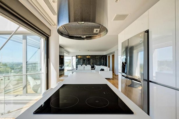 The property features 4 spacious bedrooms, 3 bathrooms, and an additional WC, ensuring convenience for families and guests. The open-plan living and dining area is bright and airy, seamlessly connecting to a stylish, fully equipped kitchen. High-quality wooden flooring and aluminum window frames enhance the sophisticated ambiance.