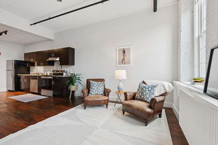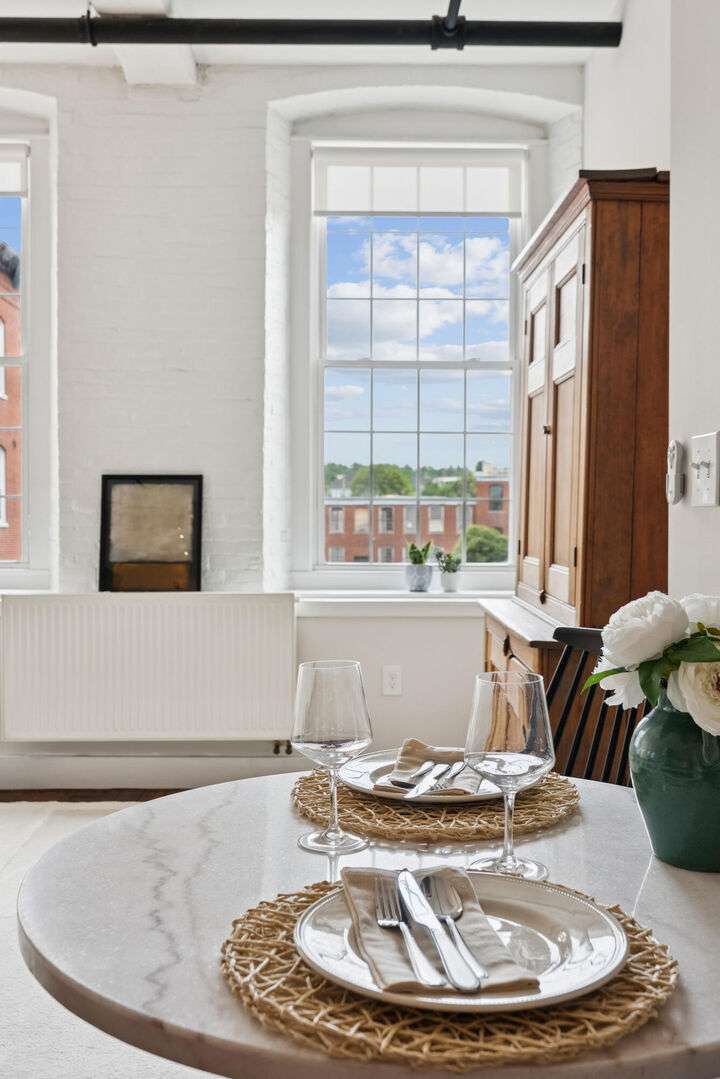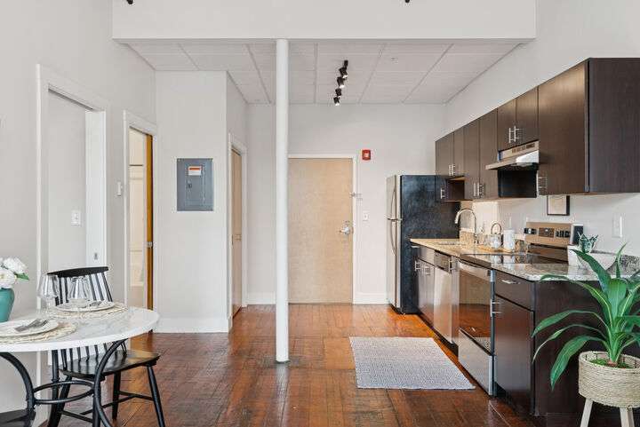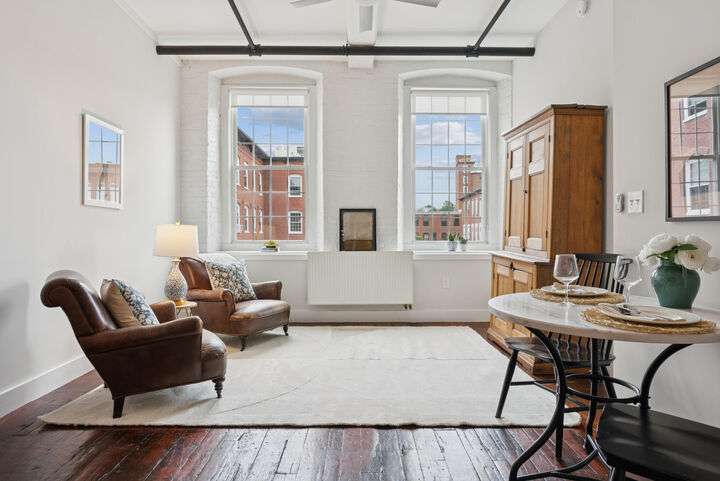 Discover this charming, light-filled one-bedroom condo in Biddeford, Maine, located in the vibrant Pepperell Mill Campus, an iconic riverside mill complex transformed for modern living. This beautifully designed unit combines historic character with modern convenience, featuring high ceilings, painted brick and beams, antique maple hardwood floors, and oversized windows that bathe the space in natural light. The stylish, functional kitchen includes granite countertops, stainless steel appliances, ample cabinetry, and updated lighting. An open-concept layout offers seamless flow for relaxing, cooking, and entertaining while still preserving defined spaces. The bedroom includes a cozy nook perfect for a desk or bureau. A generously sized storage unit provides plenty of space for belongings—an incredible bonus for condo living. Living in Biddeford means joining one of Maine's most exciting and fast-growing communities. Once a historic mill town along the Saco River, Biddeford has evolved into a thriving creative hub. The Pepperell Mill community features residents, artists, entrepreneurs, and local businesses all connected within a walkable 17-acre campus. Just 20 minutes from Portland, Maine, and steps to the Saco Transportation Center with daily train service to Boston, the location offers unmatched convenience. Residents enjoy low HOA fees (with internet included), solar energy, parking, a dog park and wash station, grilling areas, EV charging, and bike storage—everything needed for modern, efficient living. Biddeford blends small-town charm with the energy of a revitalized downtown. With award-winning restaurants, coffee shops, bakeries, and breweries gaining recognition throughout the Northeast, this condo offers the perfect opportunity to live vibrantly, creatively, and connected in one of Southern Maine's most sought-after neighborhoods.