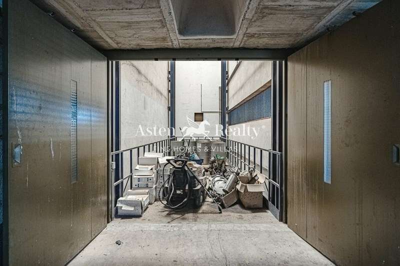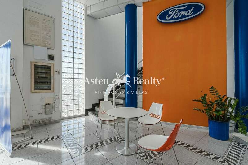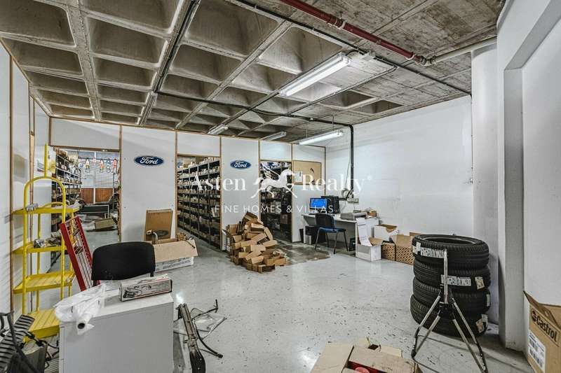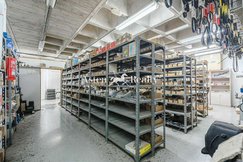 It has 4 floors: 2 of which are basements for workshop and warehouse, they have toilets and each basement has a built area of 390 m2. The ground floor is destined for commercial use and exhibition area, it also has toilets and has a constructed area of 387 m2. The upper floor is also used as a showroom, office, tool room, kitchen and toilets, occupying a total area of 410 m2. The building also has a practicable roof terrace. It could be possible to build another floor and has a small plot at the back.