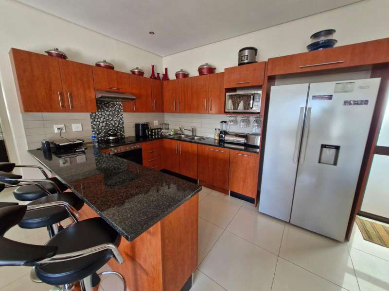 For all year round enjoyment do come view fantastic freestanding ocean home that's now available. It's a neat, three-bedroom property featuring spacious bedrooms with built-in cupboards and a shared full bathroom. The home boasts gracious living spaces and an open-plan kitchen with granite tops, a breakfast nook, an oven, hob with an extractor fan, a double sink, and space for a double-door fridge. Beautiful ceramic tiles flow throughout the lounges, which have double doors leading out to an outdoor patio with a built-in braai, perfect for entertaining family and friends. This property offers all the comforts of coastal living, conveniently located just 12km from both the airport and the city. Additional features include a solar geyser and undercover parking for two vehicles. The Coral Beach estate provides excellent security with guards on patrol and a biometric access system. Please let me know if you'd like more information or to schedule a viewing.