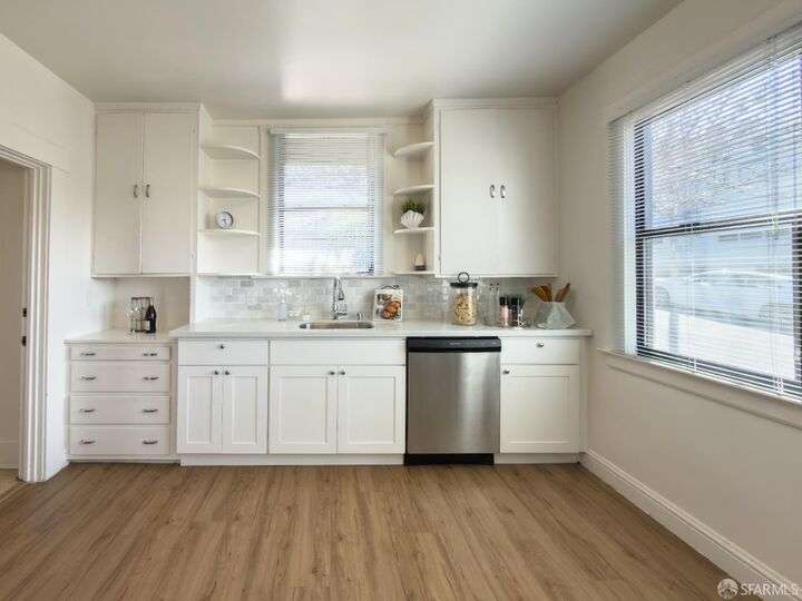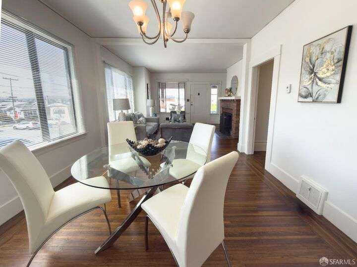 Master of Curb Appeal and Classic Charm. Step inside this cozy floor plan of 2 bedrooms, 1 bath, living/dining room combo, updated kitchen w/ quartz counters, some windows dual pane, gleaming wood-floors, and low maintenance/well maintained yard for entertaining or just relaxing. Come home from work to enjoy a glass of wine and enjoy a view of the SF Downtown skyline view from your own front porch! Garage consists of 1 car parking with plenty of storage or room for a home gym, plus driveway room for a 2nd car. Home is detached providing plenty of natural light. Conveniently located to BART/Muni, shops, restaurants, and commerce. Welcome to your new home!