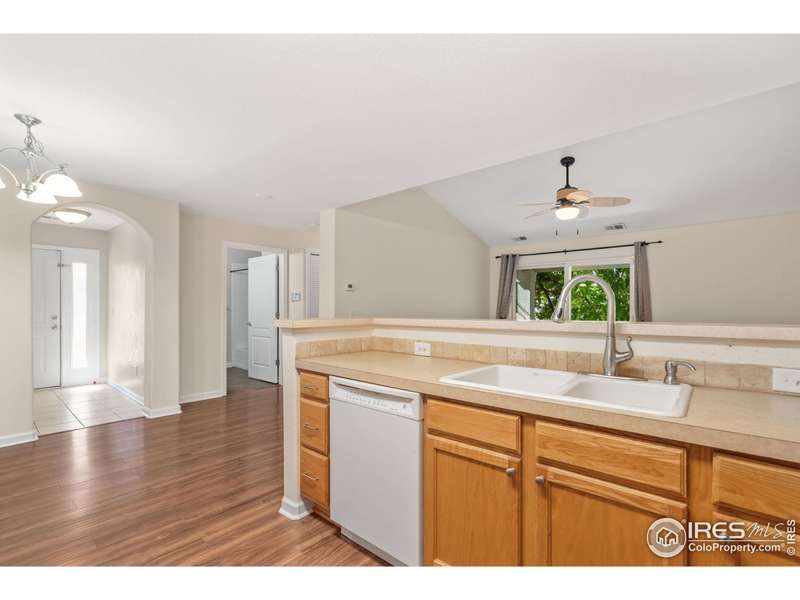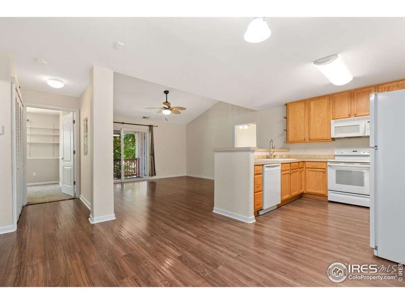 Welcome home to this charming 2 bed / 2 bath condo located in the highly desirable Lakeshore at Centerra Condos. Privacy on the 2nd floor, all one level, this until has its own private entrance and a perfect spot for a chair or some plants. Open floor plan, lots of light, desirable layout, enhanced with easy-maintenance modern wood floors, vaulted ceilings giving a nice feel of extra space, and a nice & clean color palette that's great for any decor. The kitchen features plenty of warm wood cabinetry, title backsplash, great appliances, and a breakfast bar for additional seating. Open the sliding door off the spacious living room and enjoy an early morning cup of coffee on the covered balcony. There's also a huge storage space on the balcony to easily store your outdoor gear. Two large-sized bedrooms are located opposite one another for added privacy, and the primary retreat boasts a huge walk-in closet and a convenient en-suite bath. Laundry is easy with the in-unit washer and dryer! Ceiling fans for great airflow. A nice coat closet at the entrance is great for winter coats and boots. Two reserved parking spots make parking worry-free. Wonderful amenities with a community pool, ponds, walking trails, clubhouse, wonderful park, and proximity to plenty of shopping and Hwy 34 and I-25 to easily get you anywhere you need. This move-in-ready condo is just waiting for you to move right in and call it home! Come see it today, wont last long!