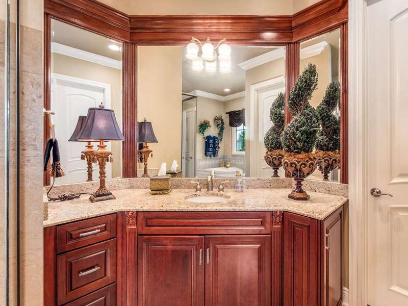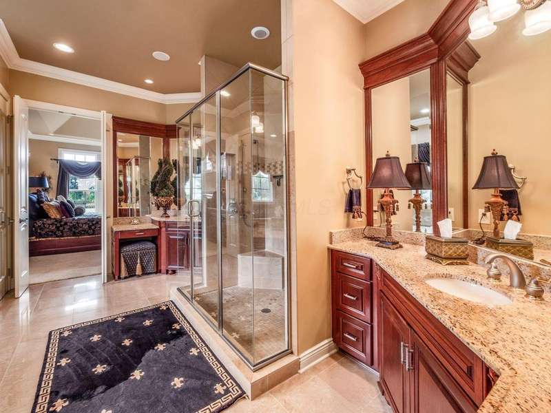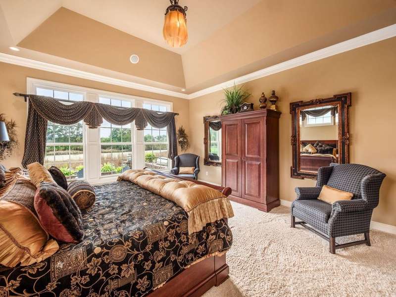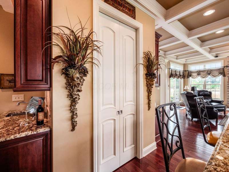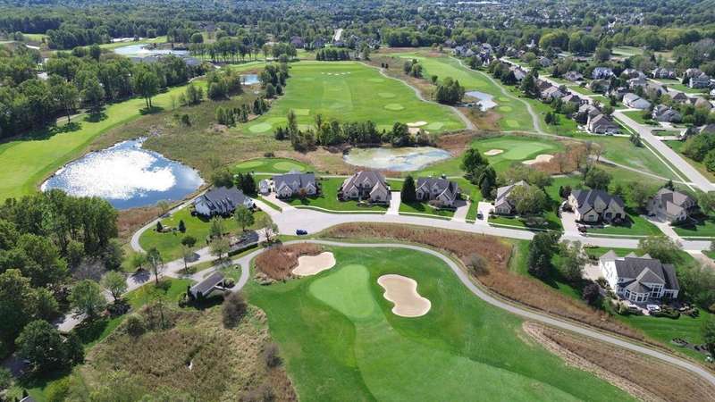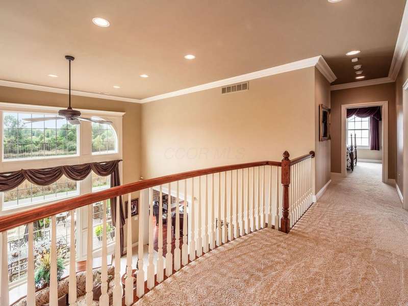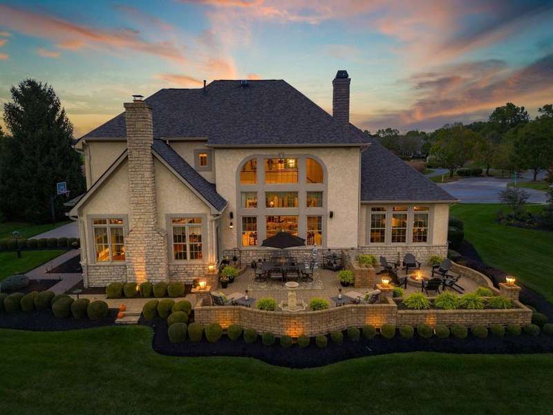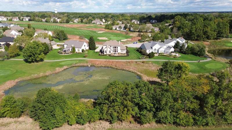 Experience the ultimate in luxury living with this extraordinary Romanelli & Hughes custom-built home featuring a first-floor primary suite and spectacular panoramic golf course and pond views in the prestigious Medallion Estates community. Nearly 6,200 sq ft of refined living space blends timeless design with exceptional craftsmanship.The Jae Company-designed kitchen offers Wolf & Sub-Zero appliances, granite counters, center island, custom cabinetry, and a wet bar connecting the hearth, dining, and great rooms. The coffered family room features a stone fireplace, while a paneled office with built-ins provides a private workspace.The first-floor primary suite includes tray ceiling, golf views, and a spa-inspired bath with soaking tub, glass shower, dual vanities, and custom closet. A Jae Company laundry features Asko washer/dryer, built-ins, and pull-out shelving. Upstairs are three bedrooms, two full baths, and a loft-style hallway overlooking the great room.The finished lower level includes a full bar with Viking appliances, media and game areas, a fifth bedroom suite, workout room with mirrored wall, and a second laundry/utility area.Outdoor living is exceptional ? a paver patio with built-in Lion grill, fire pit, water feature, and unobstructed golf and pond views. Additional highlights: new roof (2022), new HVAC (2023), 3-car garage, irrigation system, central vac, and premium lot with no homes in front or behind.Owner is licensed real estate agent.