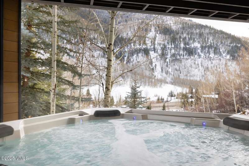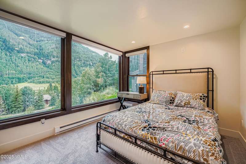 Step into this beautifully remodeled home that offers an open concept main floor, where living and dining areas seamlessly blend under soaring vaulted ceilings with the kitchen. Expansive windows flood the home with natural light, creating a cozy and inviting atmosphere. The living room is perfect for entertaining or relaxing, complete with white oak wide-plank floors and a floor-to-ceiling fireplace. From here, take in the breathtaking views of the waterfall and ice climbing area - the perfect backdrop for your elevated mountain lifestyle. The kitchen is a chef's dream with its functional layout, high-end appliances and large island. Wood beams and iron railings add character and coziness to its design. The voluminous family room was designed where family and friends can gather to watch the big game or movies and is spacious enough for work out equipment. Upstairs, enjoy a lofted office space with skylights, offering a bright and inspiring work environment. The primary suite is a true retreat, featuring his and hers closets with custom built-ins for storage and organization. The primary bath has abundant natural light and features a water closet, two separate vanities, luxurious soaker tub, and over-sized shower with dual rain heads. Three spacious bedrooms are located downstairs, each with its own en suite bath, offering ultimate comfort and privacy for family members or guests. For added convenience, the home also features two separate laundry areas, and mudroom with abundant storage, ideal for all of your gear. The two-car attached garage with epoxy flooring provides space for vehicles and additional storage. The home's unique design ensures fabulous privacy- the garage is the only common area between the duplex.