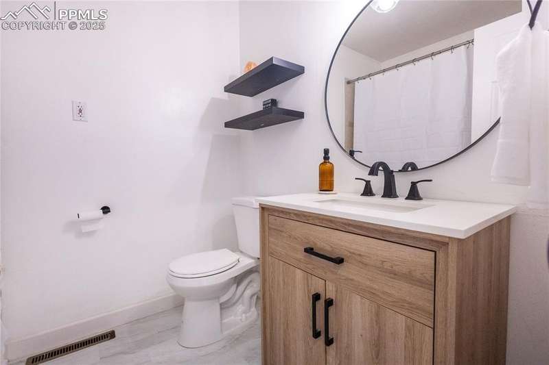 Tucked within the established community of Rustic Hills, presents a rare opportunity that feels less like a purchase and more like a discovery. This five bedroom, two bath residence offers the kind of everyday living that effortlessly balances comfort, convenience, and character. Hardwood flooring flows throughout the main level, lending warmth and refinement, while the finished basement with its soft carpeting provides additional living space ideal for hosting, relaxing, or creating a private retreat. Out back, the oversized yard unfolds with sweeping views of the Front Range, making it a natural extension of the home for gatherings both intimate and grand. Few properties in this price point can claim such a combination. You have mountain views to the west, privacy enough to entertain freely, and a location that places you minutes from the very best of Colorado Springs. Positioned between Powers and Academy, the home allows for swift access to shopping, dining, and daily essentials, while still preserving the quiet charm that Rustic Hills is known for. For those with a passion for recreation, the area offers a wealth of opportunity. A short drive connects you to multiple golf courses. Each with its own unique backdrop of fairways and mountain ridge lines. Thus providing the perfect balance of leisure and activity. Whether you’re drawn to morning tee times or simply appreciate the prestige of living in proximity to such amenities, this detail is one of many that elevates the property’s appeal. In a market where homes of this caliber rarely linger, distinguishes itself as a true value located at an intersection of lifestyle and investment that feels like the steal of a lifetime. Every detail, from the hardwood main floor to the expansive backyard, has been designed to enhance daily life while offering the kind of setting buyers aspire to call their own.