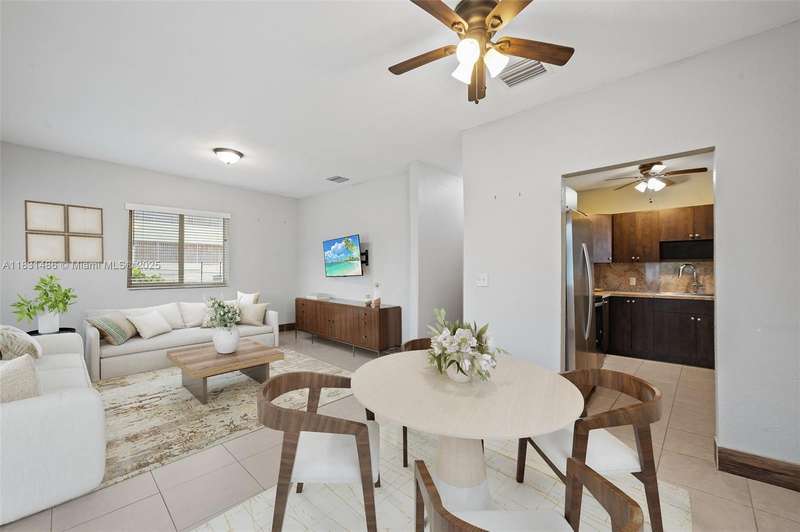 Discover this beautifully maintained one-story residence nestled in the heart of El Portal. Built in 1938, this solid concrete block home blends vintage charm with thoughtful updates. Featuring 3 bedrooms and 1 full bath, it boasts a spacious layout with ceramic tile flooring, a large kitchen with modern appliances, and hurricane impact windows throughout. The home is Smart Home ready with wiring for security cameras. Sitting on a 10,600 sq ft lot, the lush backyard offers room to relax or add a pool. Located on a quiet, tree-lined street just minutes from Biscayne Blvd, the Design District, Wynwood, and Miami Shores, with easy access to parks, shops, and dining.