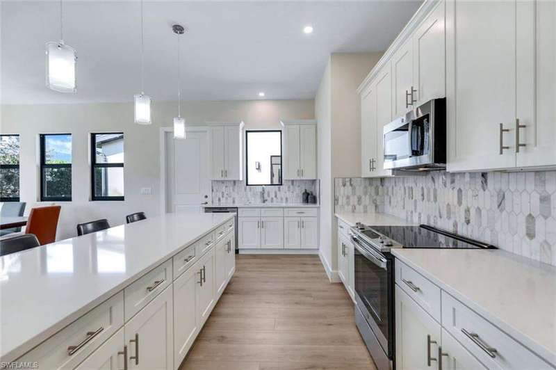JASPER FLATS - NEW CONSTRUCTION IN NAPLES, MOVE IN TODAY!! Attached Villas at Jasper Flats: The Wyoming Furnished Model features 1350 sq. ft. under air and superior standard fittings and finishes including: CBS construction, Quartz countertops throughout, solid wood Shaker style cabinetry, Moen and Kohler plumbing fixtures, stainless steel kitchen appliances and tankless hot water heaters, luxury vinyl plank flooring, frameless tempered glass shower enclosures are included and all closets feature wood ventilated shelving. Impact glass windows and slider doors standard throughout. Jasper Flats is a boutique community with a fantastic South Naples location, 10 minutes from downtown Naples and the beaches, close to Bayshore Arts District/Celebration Park, convenient to I-75! THIS IS THE FURNISHED MODEL AVAILABLE FOR PURCHASE WITH A LEASEBACK OPTION.