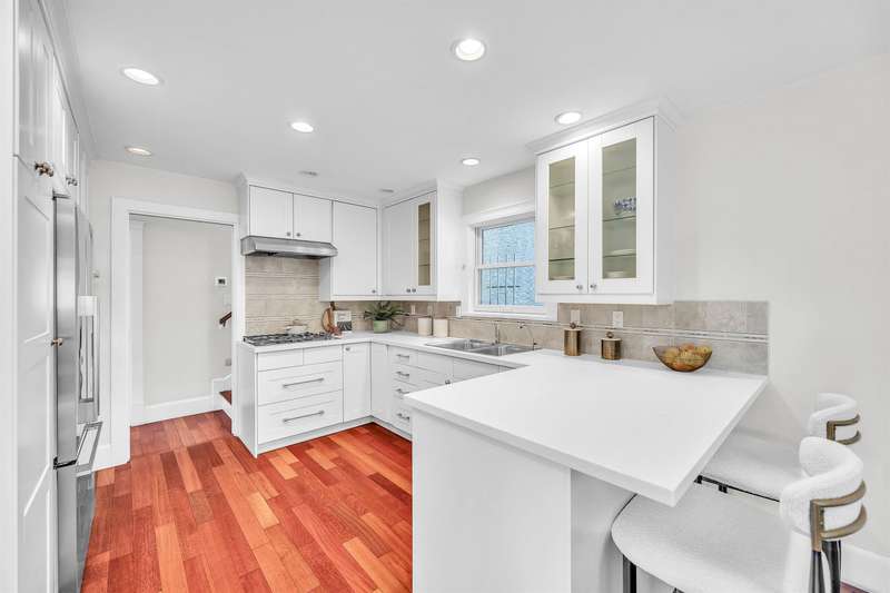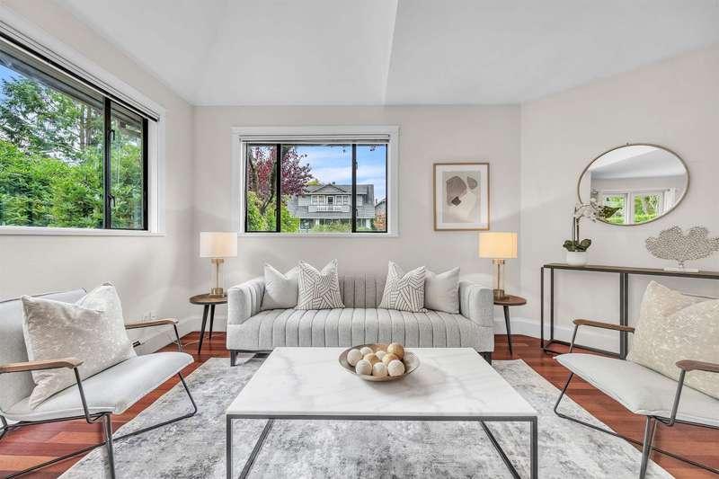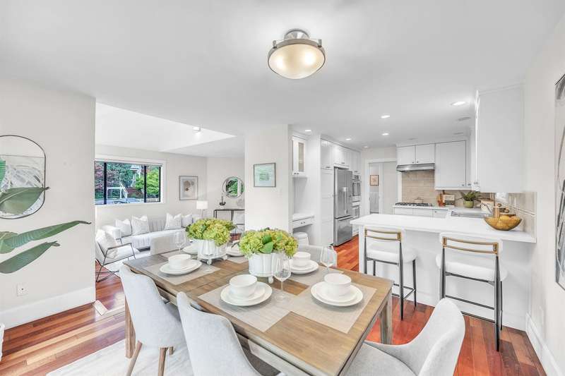 "North of 4th", where the West Side shines brightest - leafy streets, quiet charm, and the beach just a block and a half away. Or head the other direction and lose yourself in the energy of 4th Avenue. Now, picture yourself here: a sun-filled CORNER? duplex offering over 1,400 sq. ft. of refined yet relaxed living. Vaulted ceilings soar above the living room and primary bdrm, creating light, volume, and a sense of calm . Den on 3rd level (with VIEW balcony) c/b 3rd bdrm. The chef-inspired kitchen (yes, the good appliances) with bar seating flows through to the dining room and onto the privates/facing patio, just made for long swmner evenings. Parking? Your own garage. Storage? A crawl space big enough to actually be useful. Join us Thur.Oct.2nd 5:30-7pm ; or Sat/Sun.Oct.3/4th 2-4pm.
