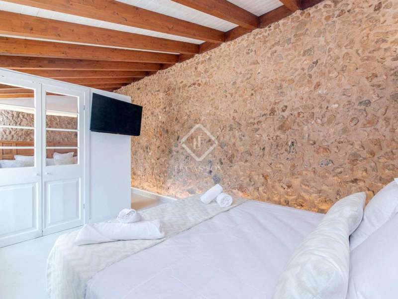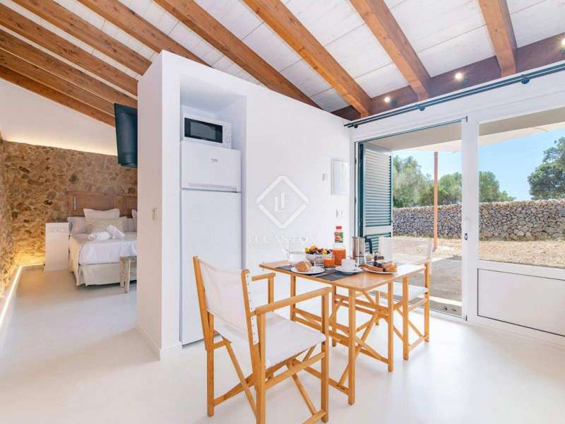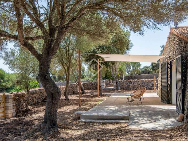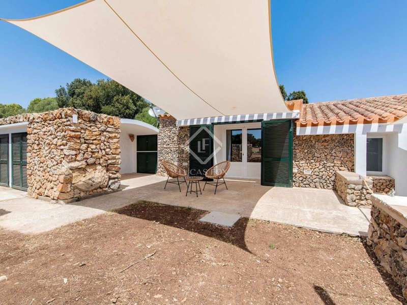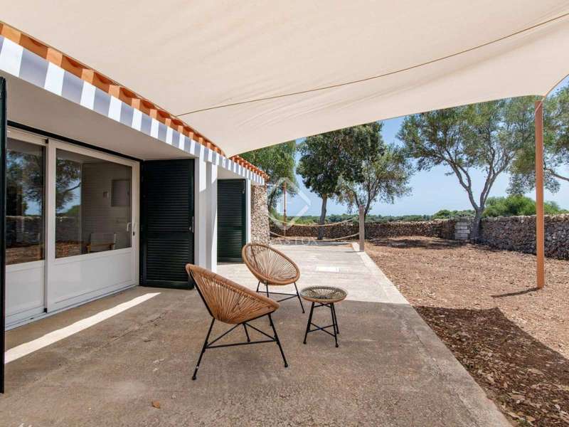 This modern rural house of 150 m² built on a plot of 499,494 m² is located in the countryside area that belongs to the town of Mercadal, located in the middle of the island. Its privileged location allows access to the famous beaches of the north of the island on foot or on horseback, if you do not want to take the car. It connects with the famous Camí de Cavalls and thanks to its 50 hectares of its own land, it offers the possibility of having horses and thus being able to go on excursions to the north of the island. This property has a valid rural tourism licence and about 20 hectares of organic farming. In addition, it also has a beautiful 70-metre pool in front of the house, surrounded by trees in a space delimited by a stone wall. It is completely renovated, both at a constructive level and in the interiors. Top quality materials have been used, all the ceilings have been restored, both beams and tiles, and the insulation has been improved. All the exposed stone has been restored, and the finishes of both the floor and the built-in furniture have been made with microcement. The house is divided into three fully equipped and totally independent apartments, each with its own light box. In addition, it has a video intercom pre-installation for the access door to the farm, its own access to the outdoor area and an installation made for air conditioners. Each apartment has a kitchen, a bedroom, a bathroom and a built-in wardrobe. Outside, we find a small building prepared to be able to put a washer and dryer and a completely restored stone oven. The house is surrounded by the fields, a large area of native trees and thanks to the fact that it is about 14 meters above the road, it provides beautiful views and a breeze that helps to combat the hottest days. . As for supplies, it has a connection to the general water network that comes from Es Mercadal, as well as a connection to electricity. The whole house is ready to connect to the internet, as well as to put an automatic gate on the car access to the estate. A fantastic property for nature lovers and to be able to enjoy it with family and/or friends. Contact us for more information, or to arrange a visit.