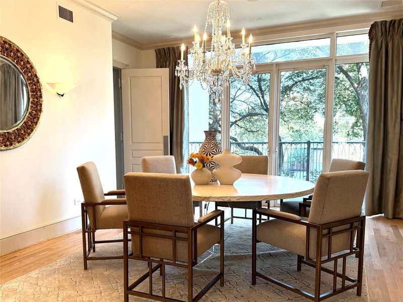 Rare opportunity to own an elegant, traditional three-bedroom residence at The Vendome, featuring one of the buildings most coveted floor plans. A fob-controlled elevator opens directly into a spacious entry and gallery. The formal living room offers floor-to-ceiling windows, a fireplace, and access to two terraces with beautiful tree-top views of Downtown Dallas and the Turtle Creek area. A handsome library offers additional space for entertaining or quiet retreat. The expansive primary suite features a large bedroom and sitting area, two step-out balconies, dual spa-inspired ensuite baths, walk-in closets, and a cedar closet. Two additional bedroomseach with their own ensuite baths and private terracesoffer flexibility for use as guest rooms, studies, or a home office. The gallery-style hallway connects the main living areas with the large formal dining room and a chefs kitchen, complete with a sunlit breakfast area and floor-to-ceiling built-ins. Two wet bars, one near the kitchen and one adjacent to the living area, each have wine coolers. The Vendome offers resort-style amenities including a heated pool and cabanas, outdoor grilling area, owners library, entertainment room with terrace, catering kitchen, fitness center, three guest suites, 24-hour valet and concierge services, and a dog park. Ideally located with easy access to Katy Trail, shopping, and dining.Includes three reserved parking spaces: 226, 227, and 297.