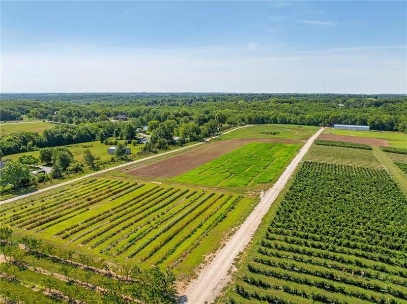 All-brick ranch on 7+ acres in Lees Summit Schoolsset up for hobby or regenerative farming. Previously part of a larger offering with the orchard/berry patch, now available separately. Thoughtfully arranged for animals with 18 fenced pens for chickens, goats, sheep, or alpaca, plus multiple outbuildings and a covered patio overlooking pasture. Inside: formal living and dining, a main-floor family room with fireplace, and a country kitchen with ceramic tile, breakfast bar, and center island. Three full baths. Enormous, ready-to-finish basement to double your living space, storage, or workshop potential. Just 1 mile to 7 Hwyprivacy without sacrificing convenience. Adjacent 31 acres is available.
