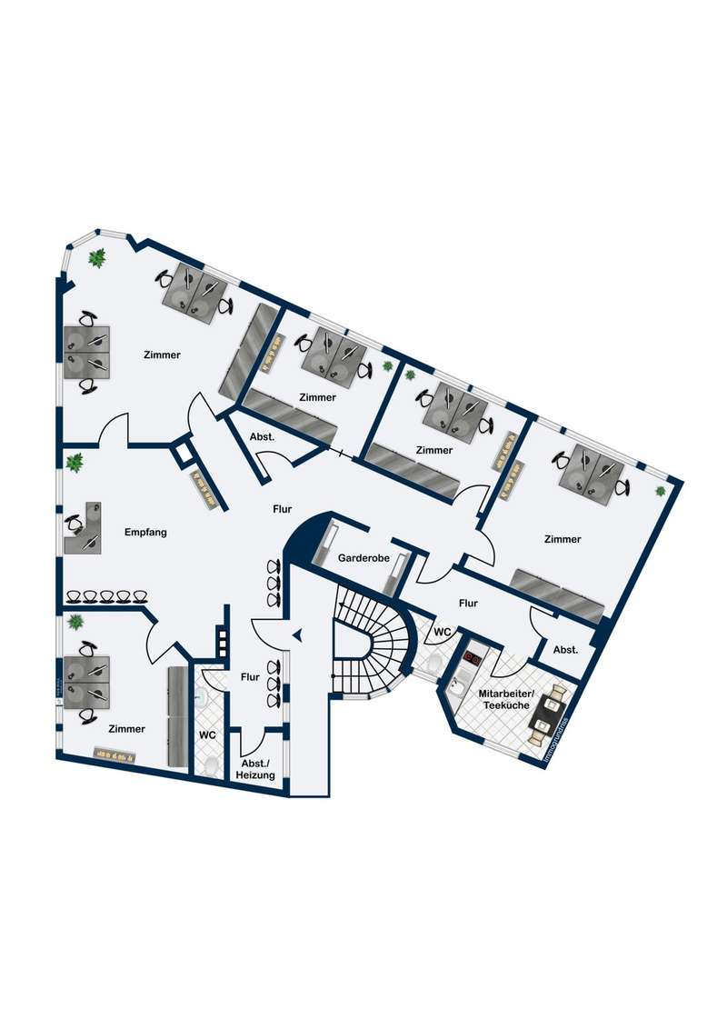 Here you will find tastefully furnished and spacious office or practice rooms in a very prestigious old building in an absolutely central location in Idstein. The office floor on the 2nd floor of the building currently has an open reception with 2 workstations, 5 self-contained rooms, a staff kitchen, a checkroom area and several storage rooms and is ideal for use as an office or practice, for example. The space was modernized and equipped to a high standard just a few years ago, meaning that a new tenant can take over the space without major renovation work in summer 2025. We would be happy to show you all the advantages of this interesting and unusual office floor and look forward to hearing from you.