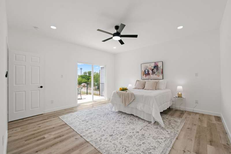 This brand-new, custom-built home combines luxury, contemporary design, and practical living, perfect for both unwinding and entertaining. At its heart is a sleek, open-concept European kitchen, complete with a striking 7-foot island that serves as the centerpiece for family meals and social gatherings. The kitchen flows effortlessly into the expansive living area, which opens to a covered patio and small yard, ideal for enjoying those warm Texas evenings. Upstairs, you'll find a spacious game room with direct access to a private patio that has a view of downtown and the Tower of the Americas. The oversized laundry room with custom cabinetry adds both functionality and storage, while the master suite offers a private retreat, featuring a spa-inspired sleek shower stall paired with a freestanding soaking tub, all accented by stylish modern fixtures and a generously sized walk-in closet. This home is located in a booming area of San Antonio, just a half mile from the Alamodome and less than a mile from the future home of the San Antonio Spurs and Hemisfair Park. Enjoy the culture of San Antonio and the convenience of urban living, and take advantage of the redevelopment boom that will create San Antonio's next great walkable neighborhood. - 11/4/2025 3:17:13 AM
