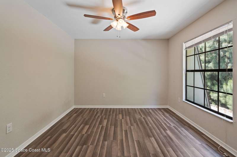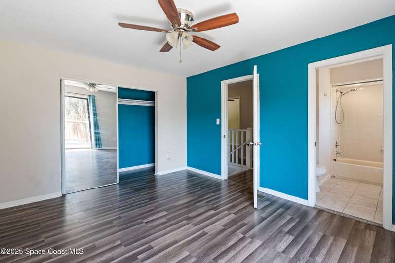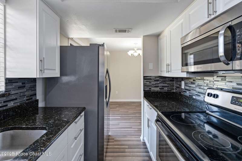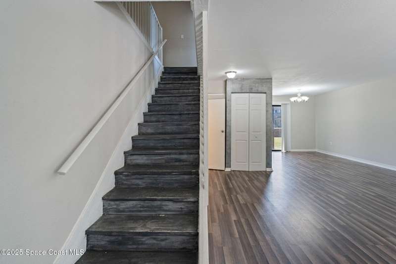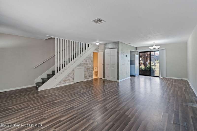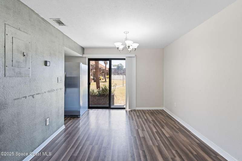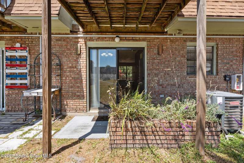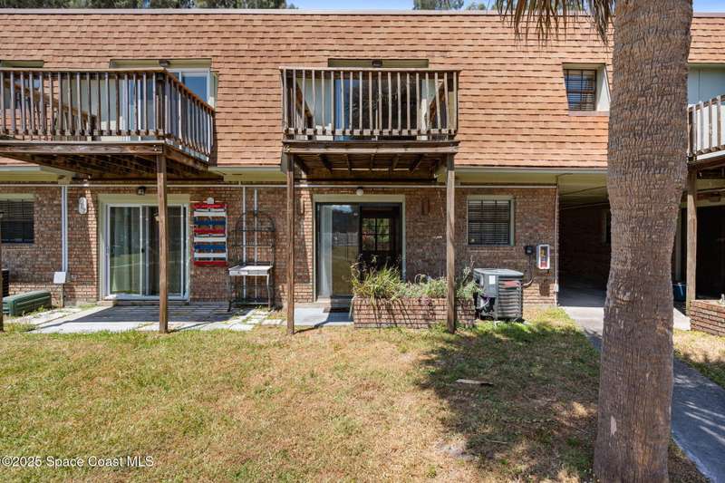 This spacious townhome is perfect for your family! 3 Bedrooms and 2.5 baths allow you to spread out for private time and then come together for family and pool-time fun (that's right outside your backyard patio)! The renovated kitchen with stainless appliances will make cooking enjoyable. An adjacent dining room overlooks the back patio courtyard. Split bedroom plan; ensuite master with balcony overlooking pool. New Roof 2023. HVAC 2017; H20 2018. In unit laundry gives you more time on the weekends for relaxation. HOA fee covers Water, Pool, Conveniently located close to restaurants, stores and nature trails. Quick 14 minute drive to relax on the beach or an easy hour drive to all of the Orlando amenities.