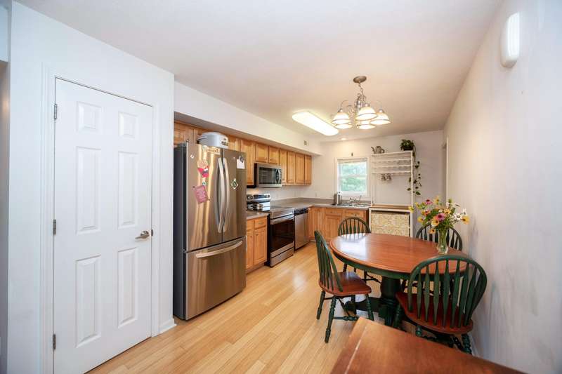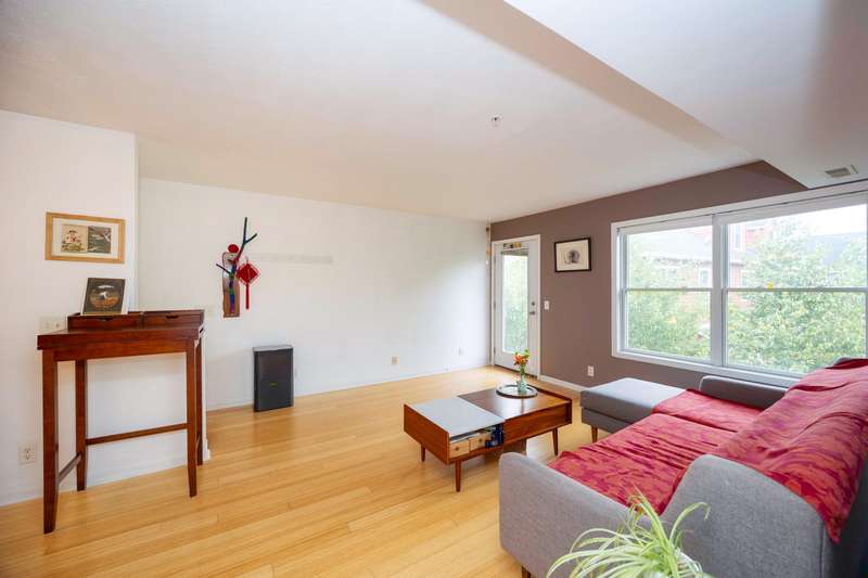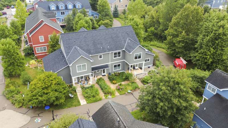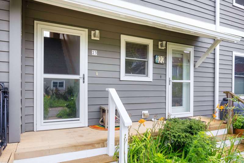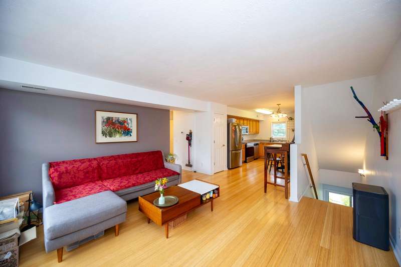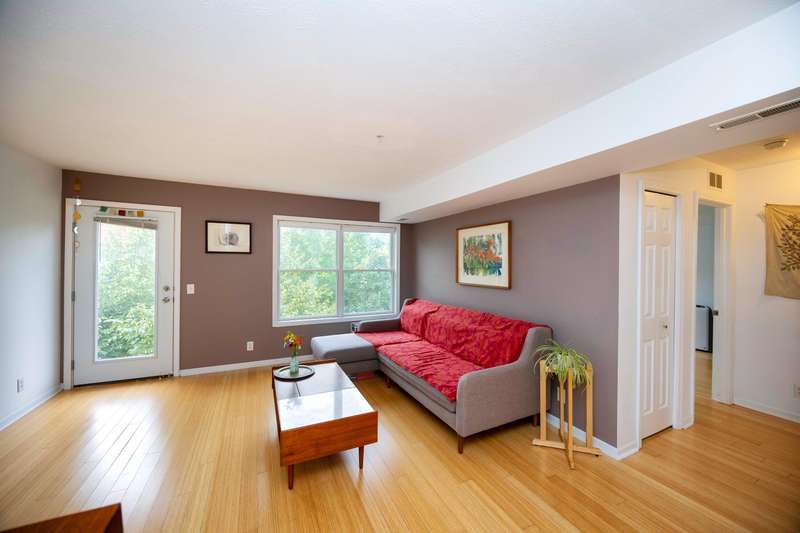 A comfortable and inviting upper-level 3 bedroom, 2 full bath condo in Touchstone Cohousing is ready for you! You'll appreciate recent updates, including brand new a/c, newer appliances, and bamboo flooring to name a few. Enter the condo and head up one flight of stairs to the main level with living room, kitchen/dining, 2 bedrooms, full bath, and W/D closet. Up another flight is a huge primary suite with dormers, 10 x 10 walk-in closet and 4-piece bathroom that includes a large soaker tub. Garage included with this condo! This intentional community is what sets this home apart. You'll love the sense of neighborly connection, shared outdoor spaces with gardens and play areas, a community building for gathering and shared meals. Learn more about Touchstone at touchstonecohousing.org