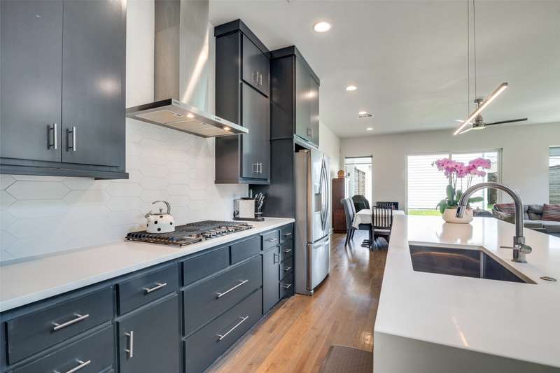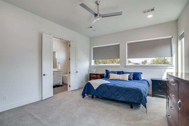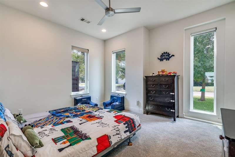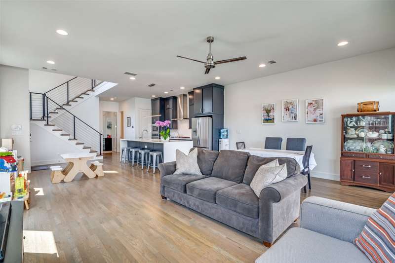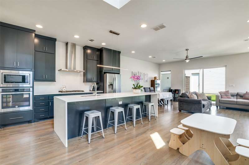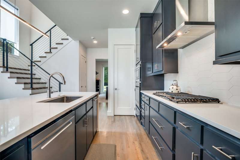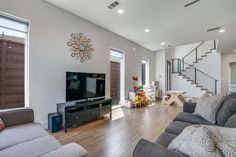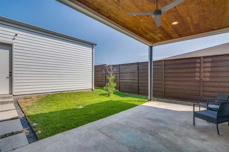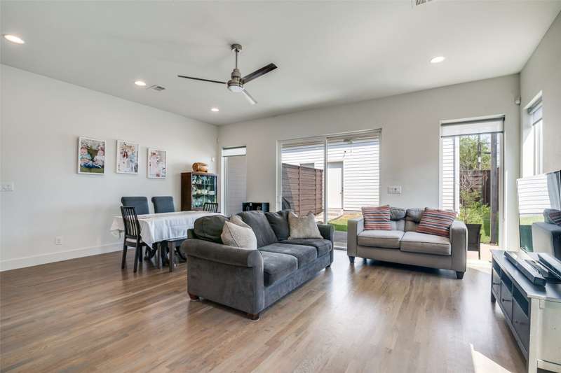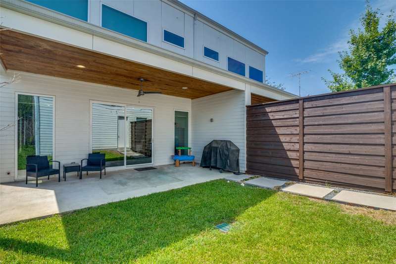 Contemporary home with striking design and high quality construction. Built in 2018 by Conrad Homes, this home features soaring ceilings, oversized rooms, and abundant storage throughout. The living room overlooks a wall of windows that flood the space with natural light and provide a perfect view of the outdoor area. The backyard is a great space for pets or outdoor gatherings, complete with a covered patio, ceiling fan, and TV wiring. The first floor open floor plan offers flexible living and dining arrangements, centered around a stunning chefs kitchen with a waterfall quartz island and walk-in pantry. The layout includes one bedroom downstairsideal for a home office, gym, or guest suiteand two generously sized bedrooms upstairs. The primary suite has a sitting area, separate tub and shower, and modern finishes. Built for efficiency and durability with full foam encapsulation, insulated walls, and heavy 2x6 construction. A rare opportunity to own a low-maintenance, energy-efficient home with a yard in the coveted 75214 zip code.