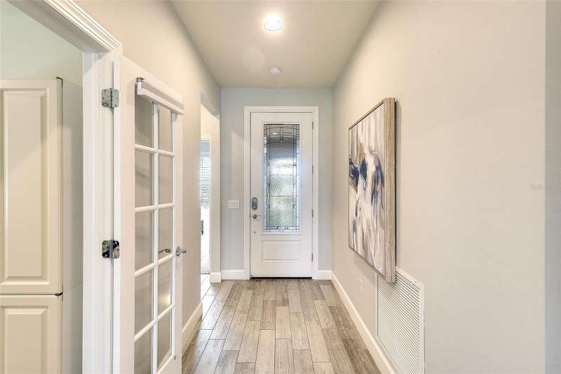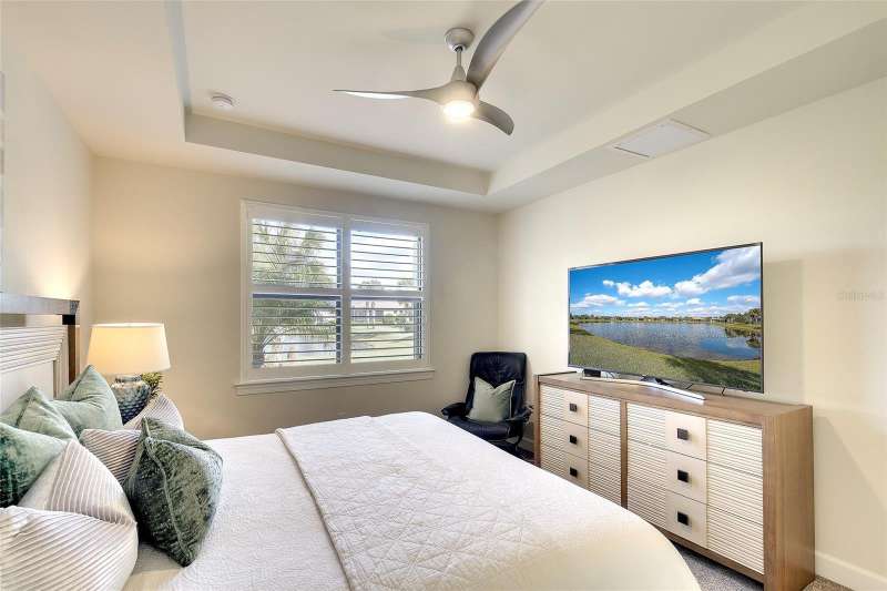 Welcome to your dream home in the maintenance-free neighborhood of Del Webb Lakewood Ranch, a highly sought-after 55+ gated community offering an active lifestyle! This stunning Abbeyville floorplan was built in 2017 on a premium lake lot and boasts breathtaking LONG LAKE VIEWS. Step through the front door from the screened in front porch and into the spacious 1,659 SF of living space that includes 2 bedrooms, 2 bathrooms, and a den with elegant glass French doors. The kitchen is a chef's delight with stainless steel Whirlpool appliances, 42" white kitchen cabinets, designer backsplash, and tasteful granite countertops. The large center island is perfect for meal prep or casual dining. Enjoy the lake views on the large screened-in lanai, the lot features extra privacy with a large yard, complete with pre-plumbing for an outdoor kitchen. The lanai also features ELECTRIC ROLL-DOWN HURRICANE SCREENS for added convenience and protection. Inside, you'll find plank-style porcelain tile flooring throughout the main living areas with convenient in floor outlet and new carpet in both bedrooms. Plantation shutters adorn the windows, adding an extra touch of elegance to the home. Rest assured, recently added EASY OPEN/CLOSE HURRICANE SHUTTERS On All Windows Plus ELECTRIC ROLLDOWN HURRICANE SCREENS On The Lanai, all added in 2021, providing peace of mind during storm season. Enjoy the convenient large laundry room with built in cabinetry a full sink and home to a large 2nd pantry space. The garage features an epoxy floor for easy maintenance and added durability. This home truly has it all, from the meticulously chosen finishes to the thoughtful upgrades. Del Webb offers a vast array of activities, clubs and interest groups. Scheduled classes and events present many opportunities for involvement and participation in this vibrant, active, resort-style 55+ community. Del Webb's Lake House restaurant frequently has live music, the expansive Club House and Amenity Center include a Fitness Center, Library, Game and Meeting Rooms, along with Tennis, Bocce, and Pickle Ball courts, and an enormous and stunningly beautiful community pool Don't miss your chance to own this slice of paradise, schedule your showing today!