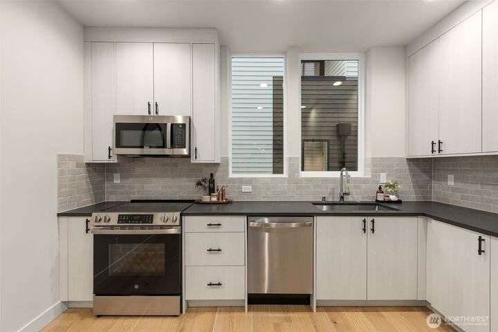 Discover Madrona & Spring by Ashworth Homes — a serene retreat tucked in one of Seattle’s most coveted neighborhoods. This intimate enclave offers a curated mix of 2-bed townhomes & 2-bed live/work residences thoughtfully designed for comfort, flexibility & style. Each home features light-filled interiors, a private rooftop deck, primary suite balcony, ample storage, quartz countertops, luxury finishes throughout, GE stainless steel appliances & ductless mini splits for year-round comfort. The vaulted live/work space is commercially ready or can convert to a 3rd bedroom — ideal for a storefront, studio, or home office. With a 90 WalkScore, enjoy Yoka Tea Cafe, Mr. West Coffee, Bottlehouse, Red Cow, Café Soleil, Lake WA waterfront & more.