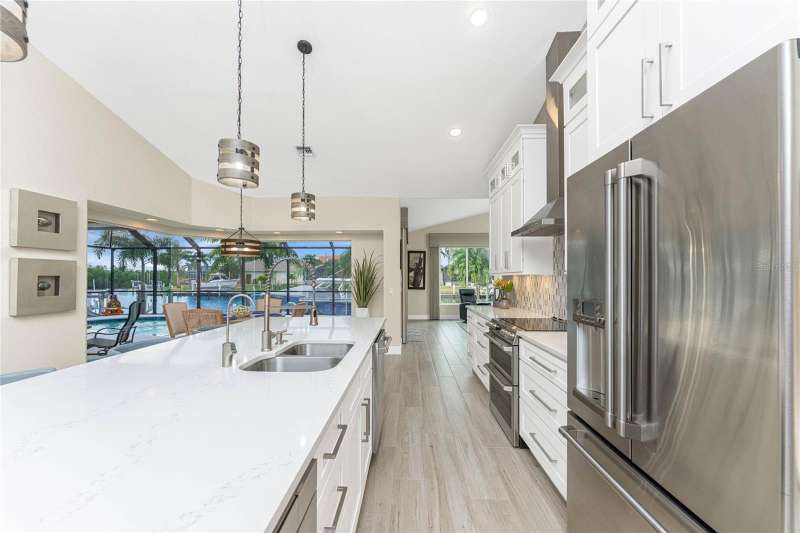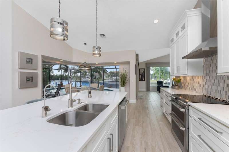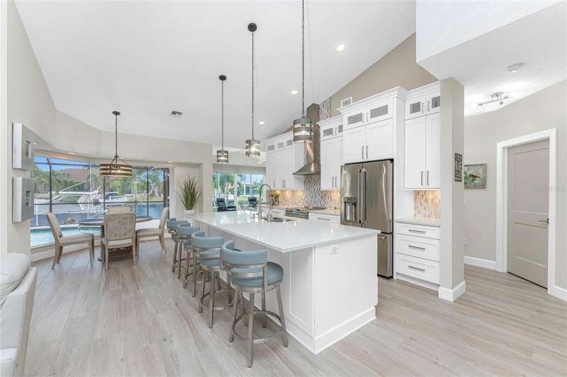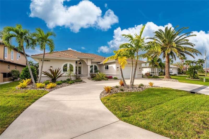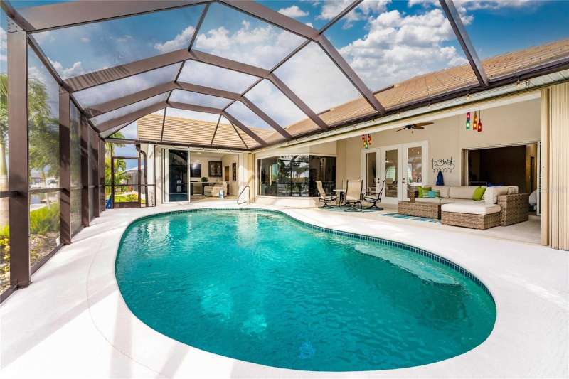 Under contract-accepting backup offers. St. Kitts is a quiet, culdesac street on a wide canal only 10 minutes by boat to open water via Ponce de Leon inlet. The circular drive WELCOMES you to 3829,your new home in paradise! This 2300 SF, 3 BR, 2.5 bath canal home has undergone a STUNNING TOTAL RENOVATION in 2023, top to bottom, inside and out! The bright and airy, open floor plan lends itself to seemless indoor/outdoor entertaining with a contemporary elegance. Family room sports a fridge, a wine fridge and icemaker making it a great party room and your party can spill out to the pool area. The smartly designed bright and open kitchen is also fabulous for entertaining with an induction stove top,breakfast bar on the quartz topped island. Impact windows (2023) on the front, bimini shutters on the side and accordian shutters on the lanai protect your home from a storm. Can you believe the following are ALL NEW SINCE 2023?...painted and landscaped (paver front to back walk and patio), gutters & tile roof, fixtures, apppliances(W&D are 2022), floors, repiped, AC,pool pump and heater, water softner,kitchen RO system, portable generator, garage door opener, interior doors and trim, all custom closets, 60'dock and 13k lb lift, Nest cameras, hot water recirculator, WiFi thermostat. Epoxy floored oversized garage long enough for an F150. All this, a high quality finished home for less than $1M! It is highly doubtful that you could duplicate this house as a new build for less than $2M! The seawalls of Punta Gorda (this lot has 80') are maintained by the city! Everywhere else it is your responsibility and expense, and all you can do is hope your neighbors takes care of theirs. PGI has a wonderful, optional civic association with a building, and numerous clubs for every interest. "Punta Gorgeous" is loaded with charm,lots of great restaurants,a historic district and tons of waterfront parks. With walking and biking trails, a dog park, the popular Fishermans Village (shops with even more restaurants),Isles Yacht Club, and St. Andrew’s South Golf Club. There's a Farmer’s Market on Saturdays and a smaller one at the History Park and Artisan Village (next to the new library)on Sundays. Play Pickleball at the“Pickleplex”. If you are bored here, it's by choice. If you have found our delightful town of “Punta Gorgeous” then you are very, very lucky indeed! Now you just need this stunning home to make it your own paradise!