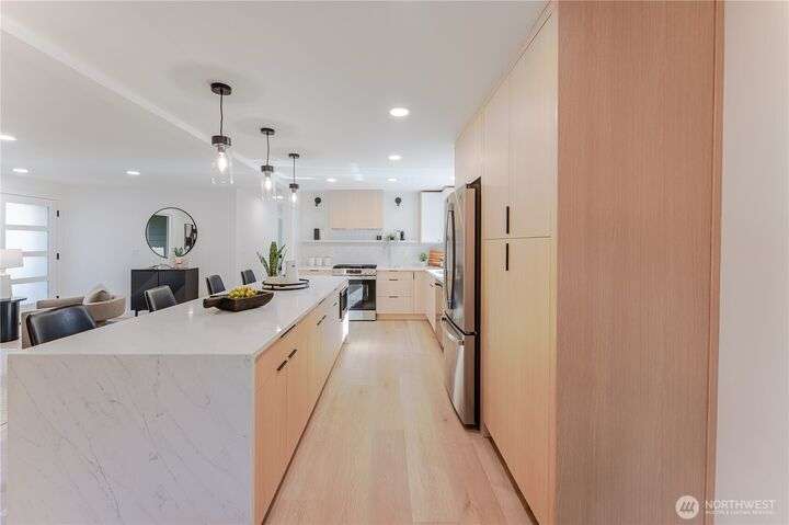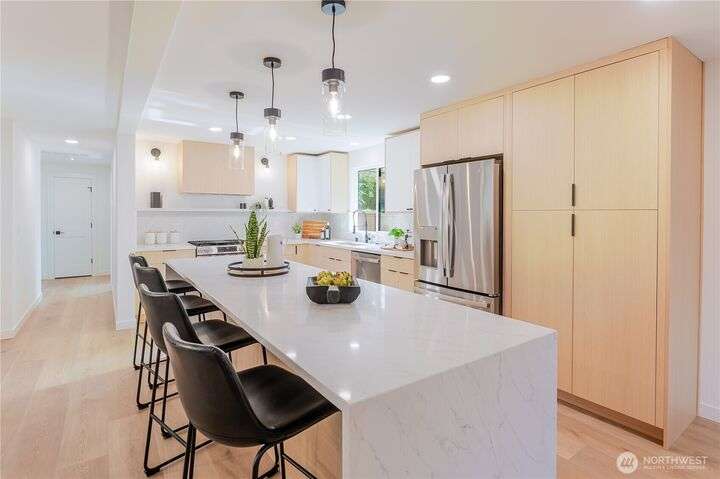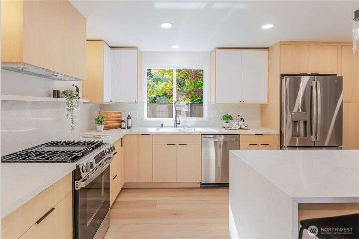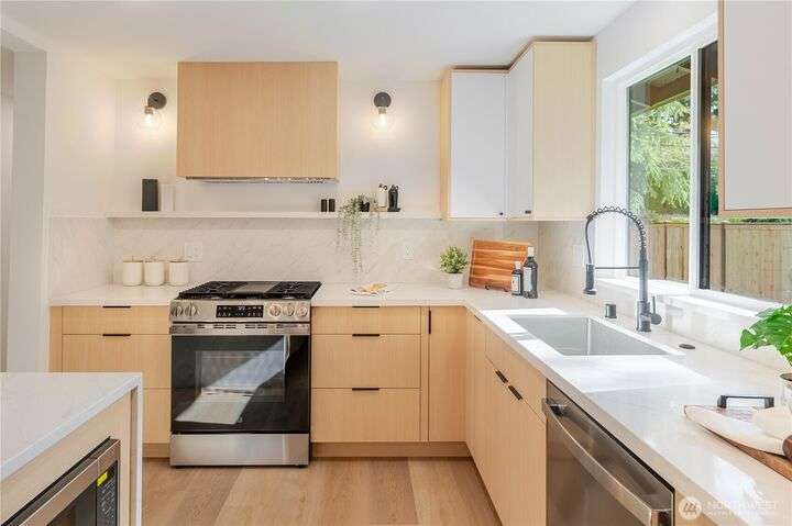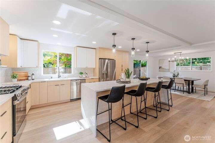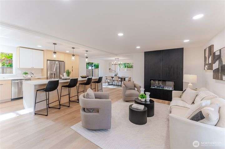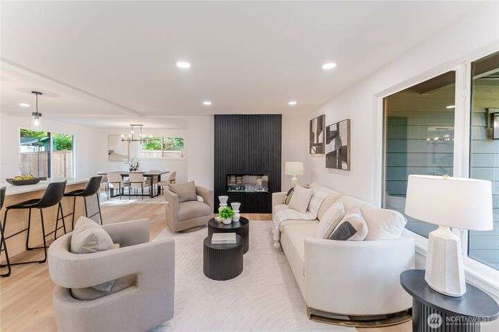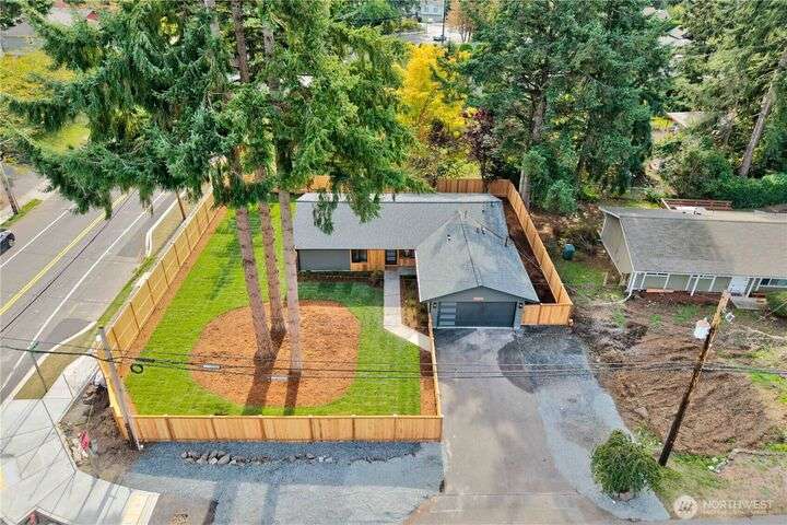 Charming, fully remodeled 3 bed, 2 bath Kenmore rambler with 1,320 sq ft of beautifully updated living space on a large, fully fenced lot in the sought-after Northshore School District! This fully permitted remodel features an open-concept layout with all-new flooring, paint (inside & out), roof, windows, plumbing, and electrical. Enjoy brand-new landscaping and stylish finishes throughout. Nestled in a welcoming neighborhood just minutes from downtown Kenmore, parks, trails, and stunning views of Lake Washington. A perfect blend of comfort, convenience, and move-in-ready quality—don't miss this gem!