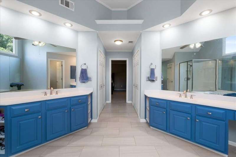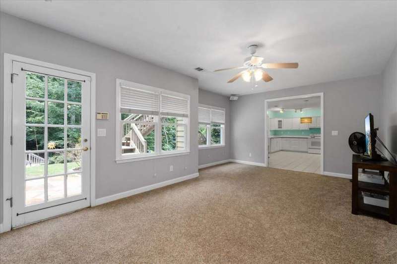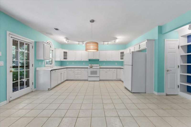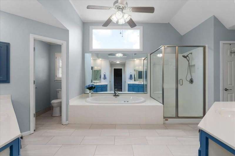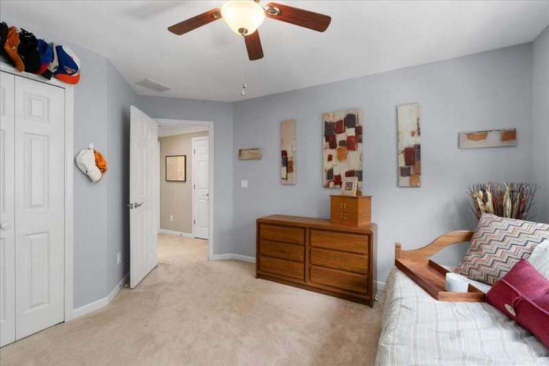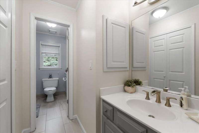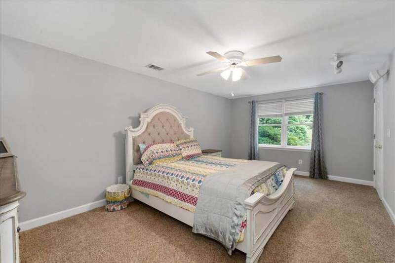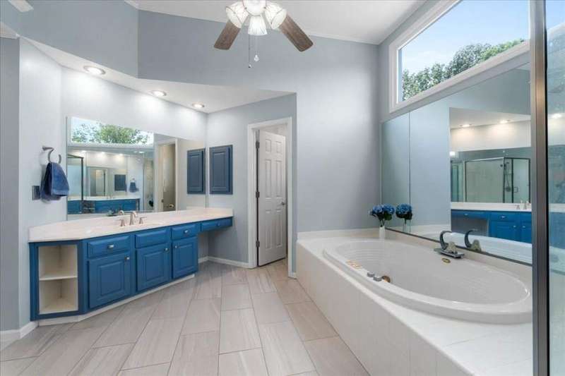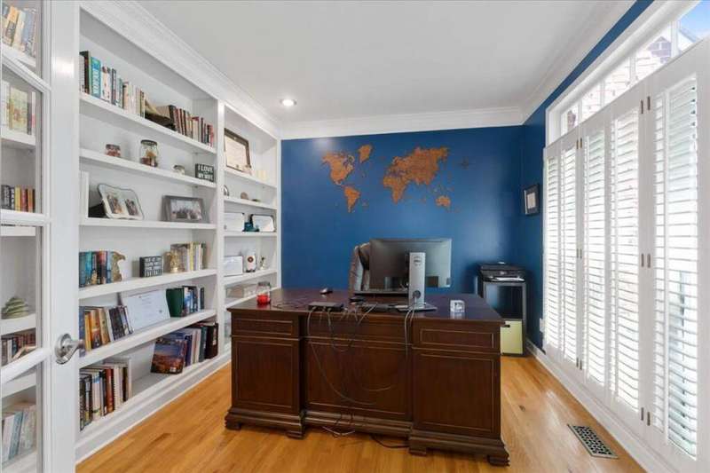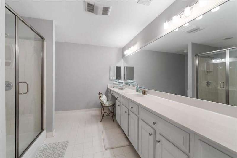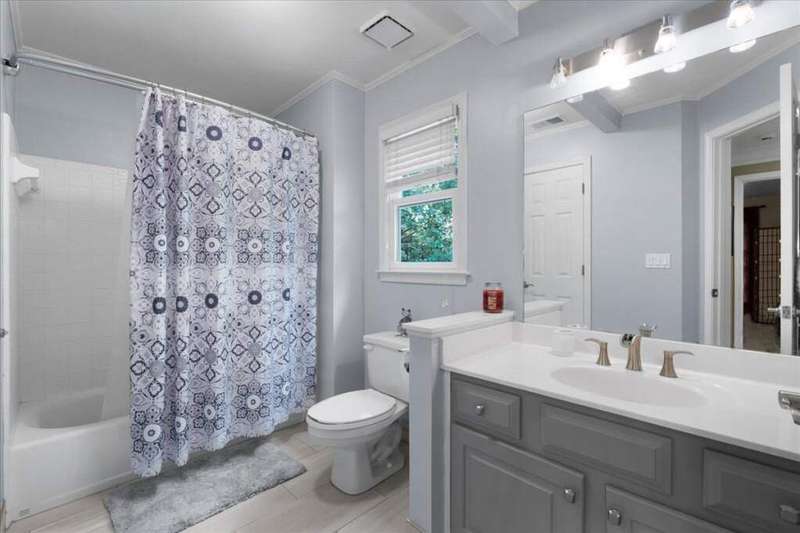 Welcome to this beautifully updated traditional home located in a vibrant neighborhood with resort-style amenities including swim, tennis, and pickleball. With 5 bedrooms, 3.5 baths, and a fully finished basement, this home offers exceptional space, charm, and functionality. Step into a stunning two-story foyer that sets the tone for the home's elegance. The main level features a private office with French doors and custom built-in bookshelves, a formal living room, and a formal dining room perfect for entertaining. The completely remodeled kitchen is a showstopper with brand-new cabinetry, quartz countertops, a farmhouse sink, gas cooktop, and an extended island with an attached dining table. The kitchen flows seamlessly into the vaulted family room, where a stacked stone fireplace creates a warm centerpiece. A convenient half bath completes the main floor. Retreat to the spacious primary suite featuring an oversized closet, dual vanities, and a spa-like bath with a separate tub and shower. Three additional bedrooms and a full bath provide plenty of space for family or guests. The full finished basement offers incredible flexibility, complete with a bedroom, full bath, large living area, full kitchen, and ample storage perfect for multi-generational living, an in-law suite, or entertaining. The backyard is a private sanctuary with multiple levels to enjoy. Two decks overlook a beautifully landscaped yard, where a charming bridge and winding paths lead to a stone patio ideal for relaxing evenings or gathering around a fire pit. The level front yard adds to the home's curb appeal.Situated in an award-winning school district, this home combines everyday convenience with community lifestyle amenities.