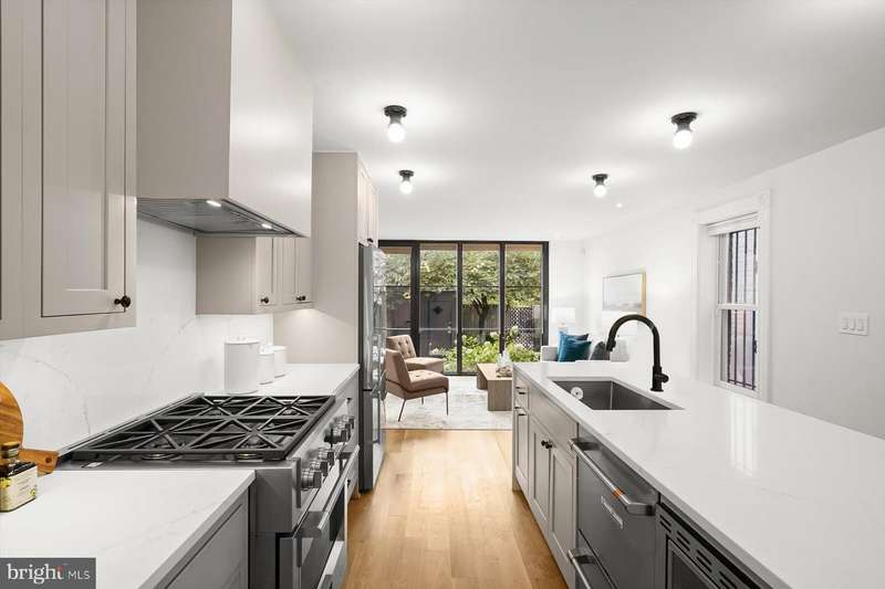Beautifully and thoughtfully renovated, this Shaw residence underwent a meticulous full renovation in 2020, blending historic character with modern comfort. Spanning over 2,100 square feet across two levels, the home offers three bedrooms, two and a half bathrooms, and well-designed spaces for both everyday living and entertaining. Inside, a sun-filled layout features a spacious living and dining area, a fully updated kitchen with high-end appliances, and flexible rooms that adapt to todays lifestyle. The primary suite includes dual walk-in closets and a spa-like bath with a soaking tub, while two additional bedrooms share a beautifully finished full bath. High-quality details such as new flooring, upgraded systems, and custom Elfa closets throughout highlight the care and craftsmanship of the renovation. Outdoors, a stone patio and storage shed create a private retreat, while dedicated parking adds everyday convenience, all in the heart of vibrant Shaw. Perfectly situated, the home is within walking distance of grocery stores like Whole Foods and Trader Joes, as well as neighborhood favorites including Nina May, Dacha Beer Garden, and Compass Coffee. Enjoy easy access to parks, cultural venues, and the Shaw-Howard U Metro Station, making daily errands and weekend outings effortless.