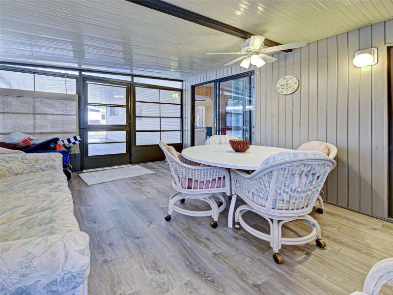 THE PLACE TO BE - RESORT STYLE LIVING IN POLYNESEAN VILLAGE - THIS UNIQUE COMMUNITY IS TUCKED AWAY OFF THE BEATEN PATH, YET ONLY ONE MILE TO SCENIC MANASOTA BEACH IN ENGLEWOOD, FLORIDA. COME TAKE A LOOK AT THIS HARD TO FIND THREE BEDROOM - TWO BATH UNIT. SPLIT PLAN WITH GUEST SUITE ON OPPOSITE SIDE OF THE HOME. The kitchen is updated with granite countertops and stylish soft close cabinets and pantry closet. This is an actual EAT-IN KITCHEN and there is a separate dining room. The living room is very spacious and accommodates plenty of comfy furniture so your family and guests can all gather together for a fun night of popcorn and movies or make it a neighborhood card night. Open up the DOUBLE SLIDERS TO THE ENCLOSED LANAI and let the party begin! There's so much room here you will be pleasantly surprised. Primary bedroom is light, and the ensuite has been updated with new vanity, flooring, tile shower and paint. You'll begin to feel like you are inside a beach resort. This is one of the few units with THREE BEDROOMS and INSIDE LAUNDRY ROOM. LOW FEES - GREAT PROVISIONS INCLUDE FIBER OPTIC CABLE AND INTERNET SERVICE, GROUNDS MAINTENANCE, HEATED POOL WITH SUN DECK, LARGE CLUBHOUSE WITH NEWLY RENOVATED KITCHEN. COMMUNITY LIBRARY, AND BILLIARDS ROOM. RARE ON-SITE STORAGE FOR YOUR BOAT, TRAILER, OR RV. COME TAKE A LOOK, CHECK OUT THE GROUNDS AND STAY A WHILE!