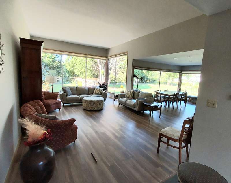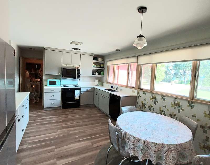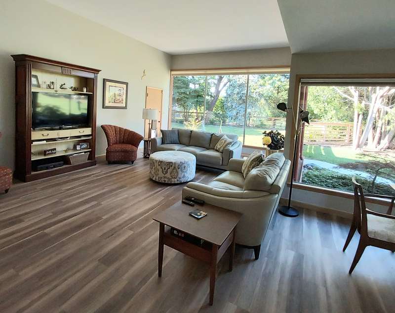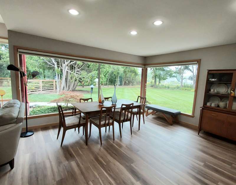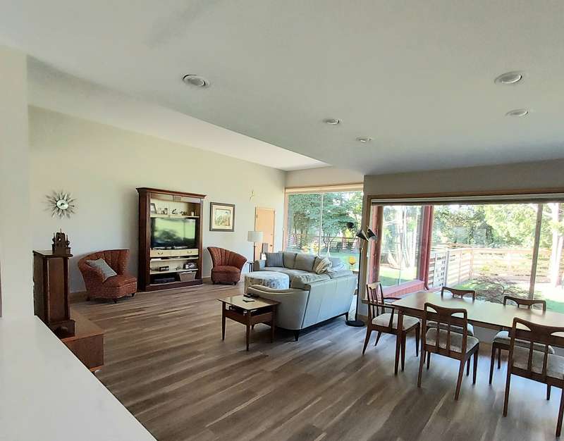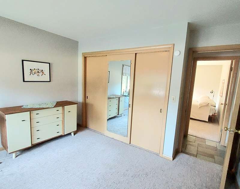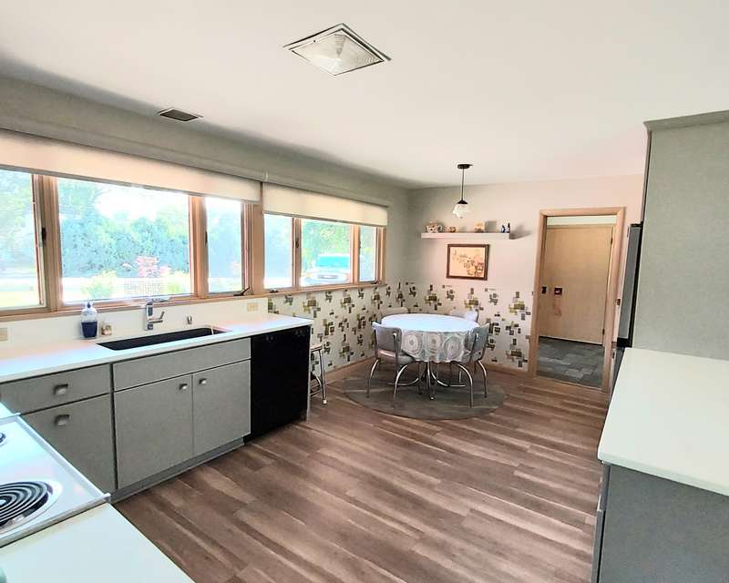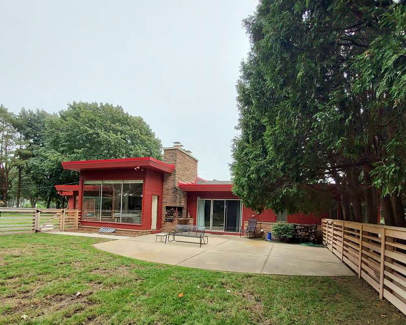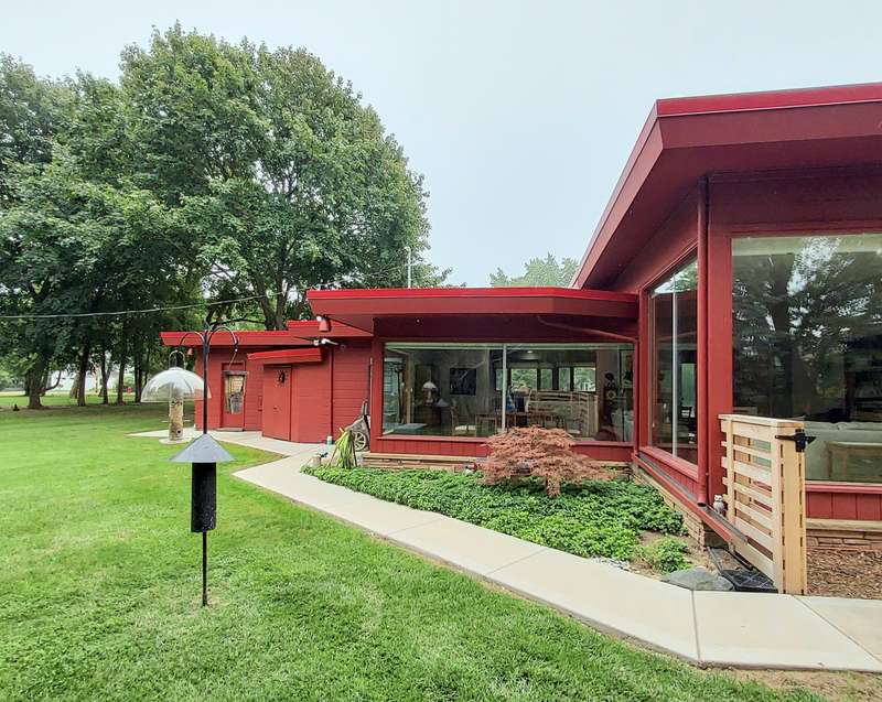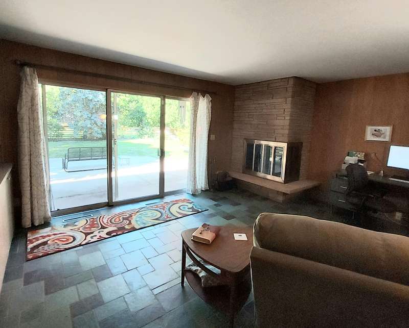 This Mid-Century Modern home was built to make you feel one with nature. Floor to ceiling windows let you view the beauty of the backyard. Feel the serenity when you first walk into the home with the large foyer. That feeling continues while relaxing in the living room, dining room or just cooking in the kitchen. Complete views of the expansive yard. Updated with modern conveniences mixed with original style of the home. Den/family room is graces with a natural fireplace and patio door that lead to an outdoor fireplace. Primary suite with wall of closets and heated bathroom floor with walk in shower. And additional two spacious bedrooms. Lower level adds to the comforts of this home with a large rec room enhanced with a kitchenette area, full bath and egress window. Welcome home.