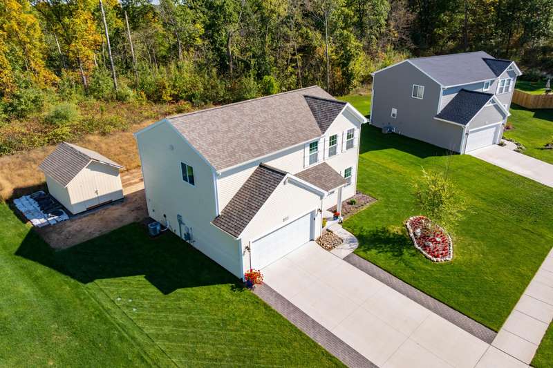 Welcome to this better than new 2 yr old home. 4 bedroom, 2.5 bath home in Twin Oaks, located just West of the City of Lowell in the Lowell School District, blends small town charm with big city conveniences! Welcome home to over 1800 sq. ft. of living space on 2 levels that blends function with style. The main floor boasts a large great room, beautiful kitchen with dining nook, convenient laundry room, stylish powder bath and a mudroom. Kitchen will feature a breakfast bar with pendant lighting, granite counters, and tile backsplash. Upstairs a master suite awaits complete with a private full bath and walk'in closet.. 3 more bedrooms and another full bath finish the upper level. Really nice 12X16 backyard shed, front and sideyard has underground sprinkling.