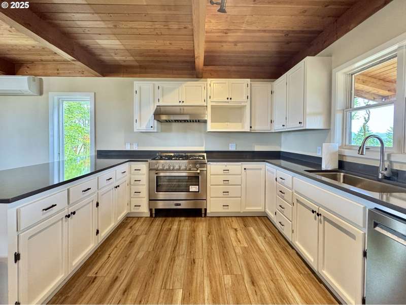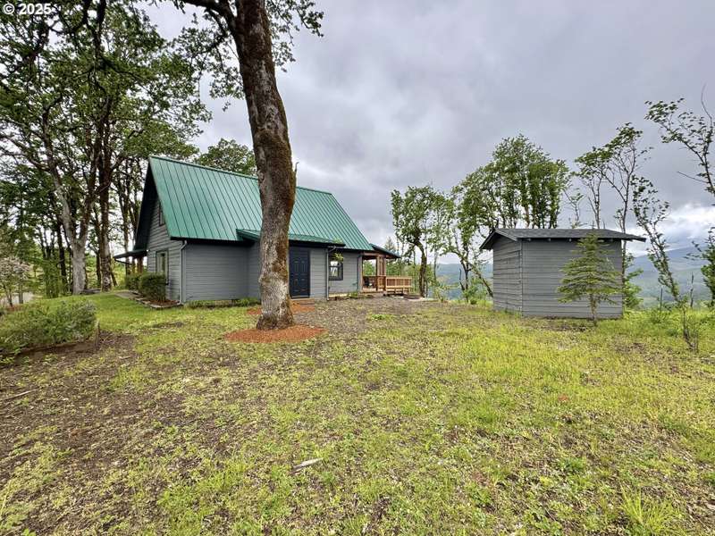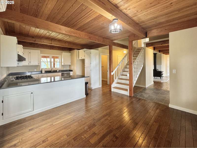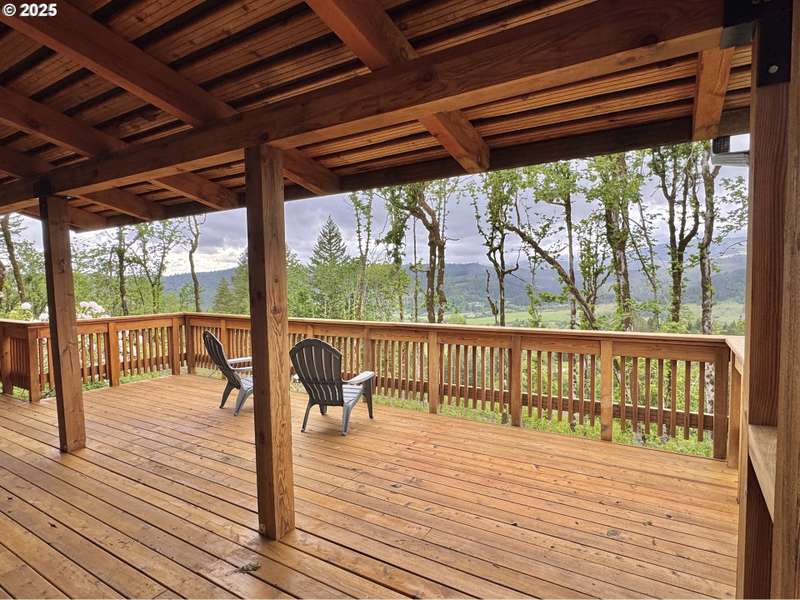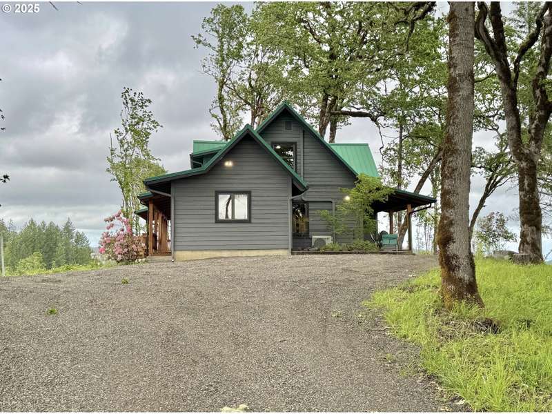 Tucked away on 36.05 surveyed acres, this beautifully remodeled 1,858 SF home offers exceptional privacy and panoramic views of Mt. Hood, Mt. Jefferson, surrounding timberland, and open farmland. The 3-bedroom, 2-bath layout features a modern kitchen with white cabinetry, quartz countertops, and stainless steel appliances. The primary bedroom is on the main level and showcases wood-vaulted ceilings, while one of the upstairs bedrooms includes a walk-in closet. Both the main and upper levels offer full bathrooms, tastefully updated with contemporary finishes. The living room boasts hardwood floors and a cozy wood stove. Step outside to an expansive covered rear deck with a lockable storage room, as well as a charming covered front porch — both ideal for taking in the breathtaking scenery. Additional highlights include a mini-split with AC, gated entry, and a peaceful setting just 15 minutes from downtown McMinnville and a little over an hour from Portland in the Willamette Valley. This property offers the perfect blend of seclusion and convenience.