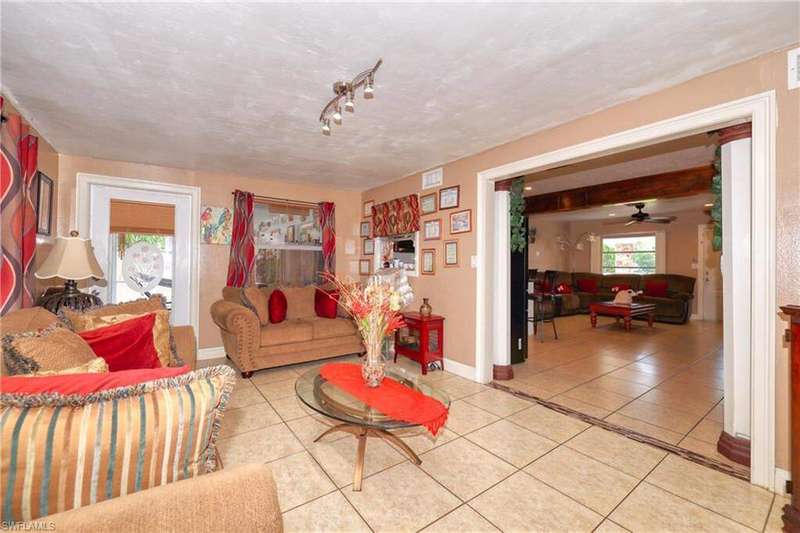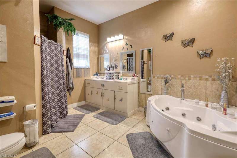Welcome to 13350 First St, a beautifully maintained 4-bedroom, 2-bathroom home offering 1,961 sq. ft. of living space and a total of 2,877 sq. ft. Set on a generous 0.33-acre corner lot, this home blends comfort, space, and thoughtful upgrades in a prime Fort Myers location close to schools and Manatee Park. Inside, you'll find tile flooring throughout for a clean and timeless look. The spacious kitchen is the heart of the home, featuring Whirlpool stainless steel appliances and abundant storage-ideal for both daily living and entertaining. The oversized master suite is a private retreat with soaring ceilings, a large walk-in closet, and a luxurious bathroom complete with a jetted soaking tub, dual-sink vanity, and an oversized walk-in shower. Step outside to enjoy the Florida lifestyle on the large screened-in lanai, perfect for outdoor dining or relaxation. The new privacy fence (2024) surrounds a spacious backyard with plenty of room for children, pets, or even a future pool. A new roof (2023) provides added peace of mind and long-term value. With its expansive layout, premium corner lot, and proximity to parks, schools, and everyday conveniences, this home truly has it all.