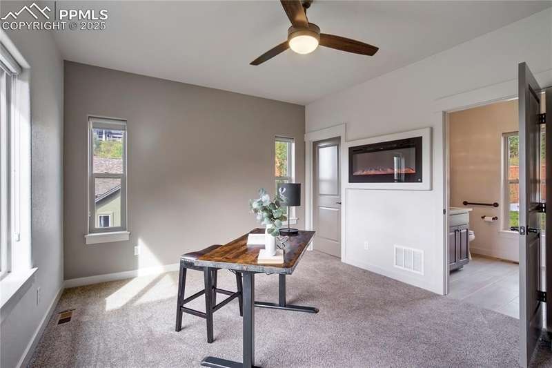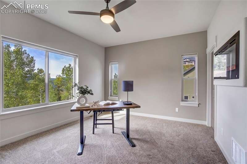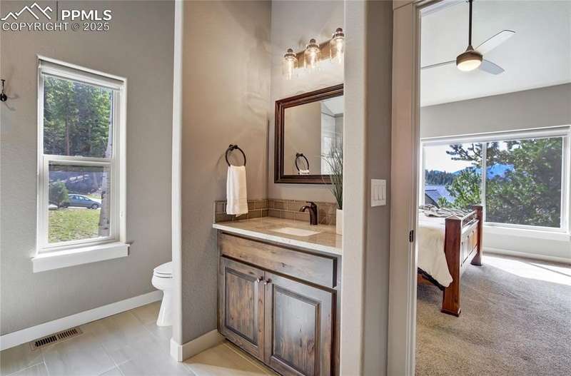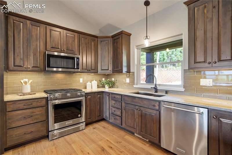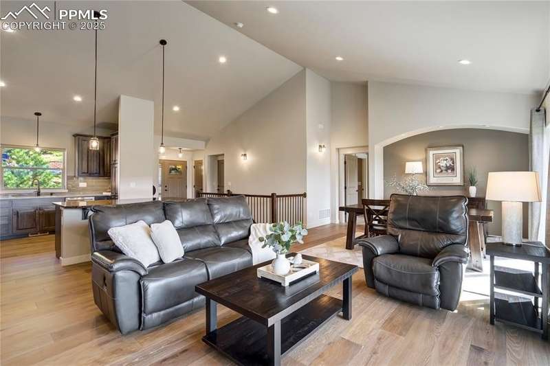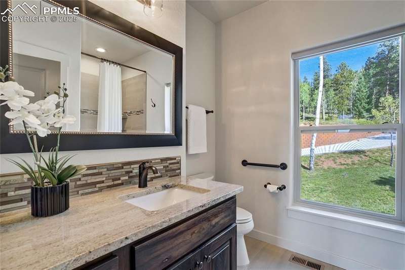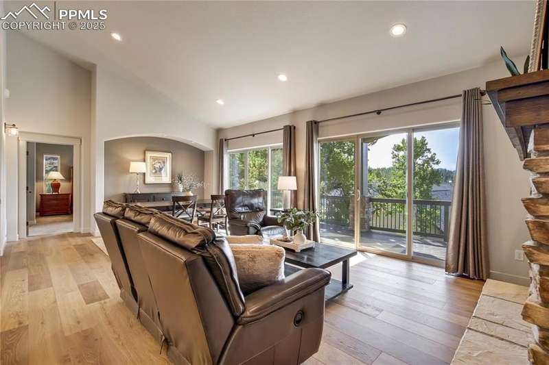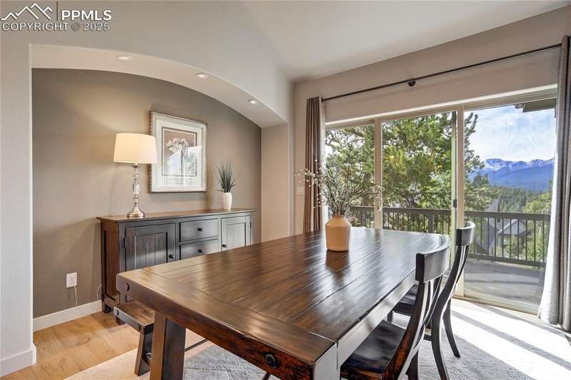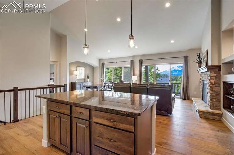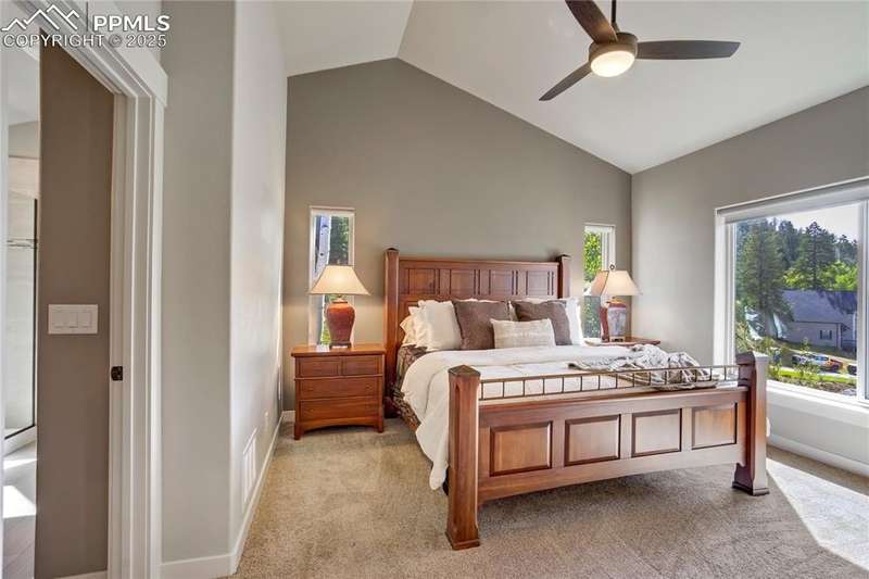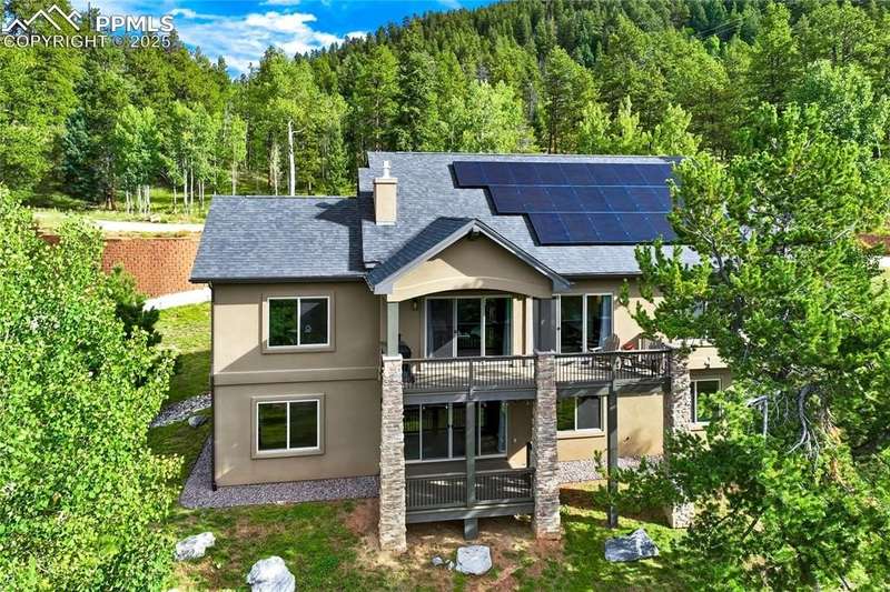 Experience the best of Colorado living in this stunning mountain home, perfectly positioned to capture sweeping, unobstructed views of Pikes Peak. Designed with upscale finishes throughout, this residence blends timeless elegance with modern comfort. Step inside to discover wide plank French oak floors, soaring vaulted ceilings, and a seamless flow that highlights natural light at every turn. The gourmet kitchen showcases stainless appliances, rustic beach cabinetry and granite surfaces, while the inviting gas fireplace creates the perfect gathering space. Enjoy outdoor living on the composite decks, overlooking pristine mountain scenery and America's mountain. Built for efficiency, this home features top-of-the-line windows, superior insulation, and paid-for solar panels paired with a 50-year dimensional roof—ensuring low utility costs and long-term peace of mind. Practicality meets luxury with a spacious 3-car garage, concrete driveway, and thoughtful craftsmanship throughout. Located in Paradise of Colorado, one of Woodland Park’s premier subdivisions, you’ll find yourself in a serene mountain setting just minutes from town conveniences.