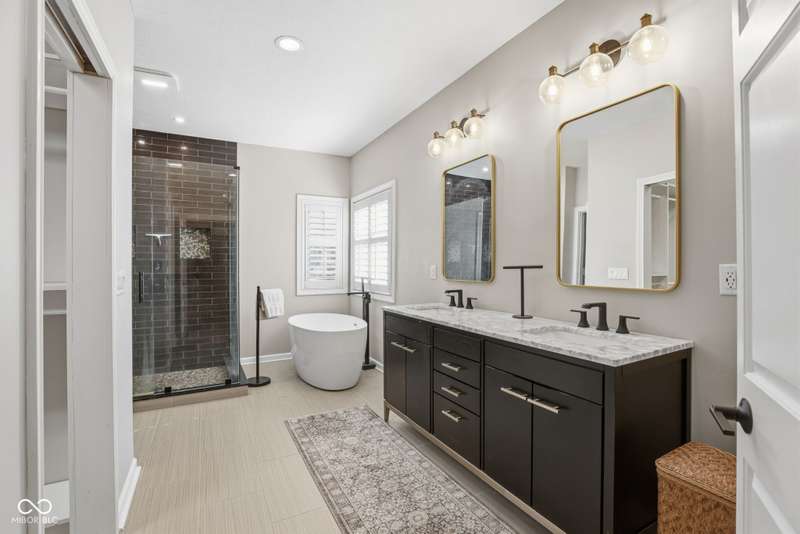 Welcome to this gracious and elegant retreat in one of Carmel's most desirable east-side neighborhoods. Perfectly positioned on a quiet cul-de-sac, this 5-bedroom, 5-full-bath residence offers refined living with exceptional functionality. Featuring a sophisticated living room, comfortable family room, and formal dining room, this home is ideal for anyone seeking generous space, comfort, and timeless style. Enjoy expansive main-level living with soaring ceilings and a chef's kitchen boasting abundant cabinetry, extensive counter space, and impressive storage throughout. Each room is thoughtfully designed to provide elegance, privacy, and ease of living - and every bedroom is paired with its own full bath. The spacious finished lower level includes a second kitchenette, large living area, bedrooms, and full baths - an ideal setup for guests, extended family, or private workspace. This home is equipped with a geo-thermal heating and cooling system, offering exceptional energy efficiency, year-round comfort, and lower utility costs. Located close to trails, parks, downtown Carmel, restaurants, and boutique shops, this property blends convenience with tranquility. With two complete levels of living, beautifully maintained and thoughtfully designed, it's truly two homes in one - offering flexibility, comfort, and enduring appeal.