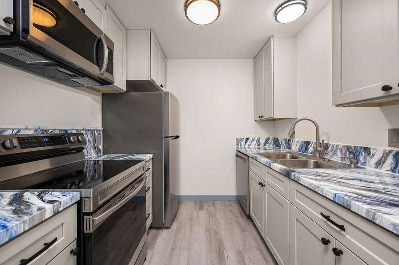 Motivated seller! Completely upgraded top to bottom! 2 bedroom, 1 bath condo for sale. Upgrades include new sliding patio doors, LVP flooring throughout, new kitchen with stainless steel appliances and custom epoxy countertops, new light fixtures, paint, trim....the list goes on! Corner unit provides outside windows in both bedrooms - lots of natural light! Close to Sherwood Park and downtown, the central location is perfect for those who love short commutes. The HOA covers all the exterior maintenance, water, sewer, gas, trash and pool access! Would make a great owner-occupied unit or a rental. Secure underground parking space, elevator and exterior balcony with storage closet round off the amenities of this unit.