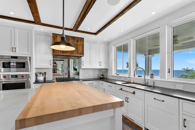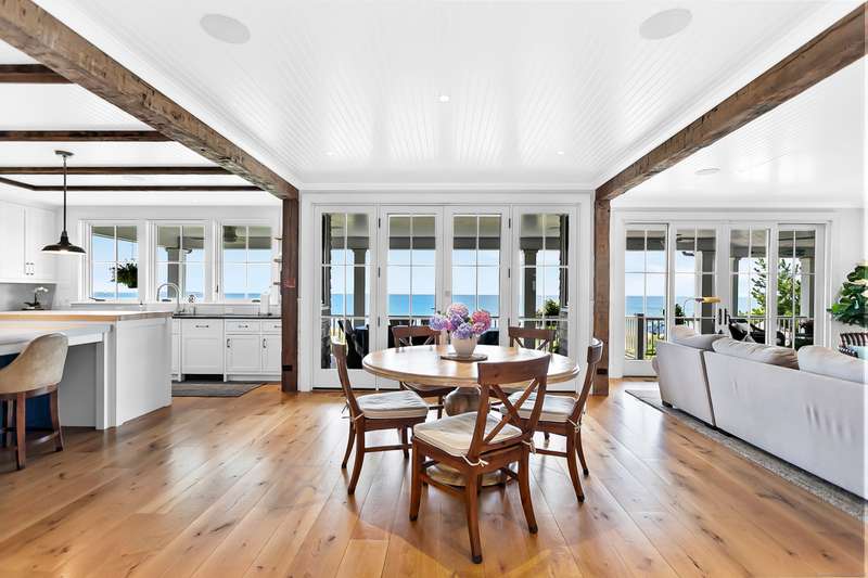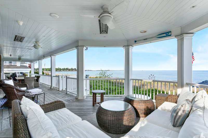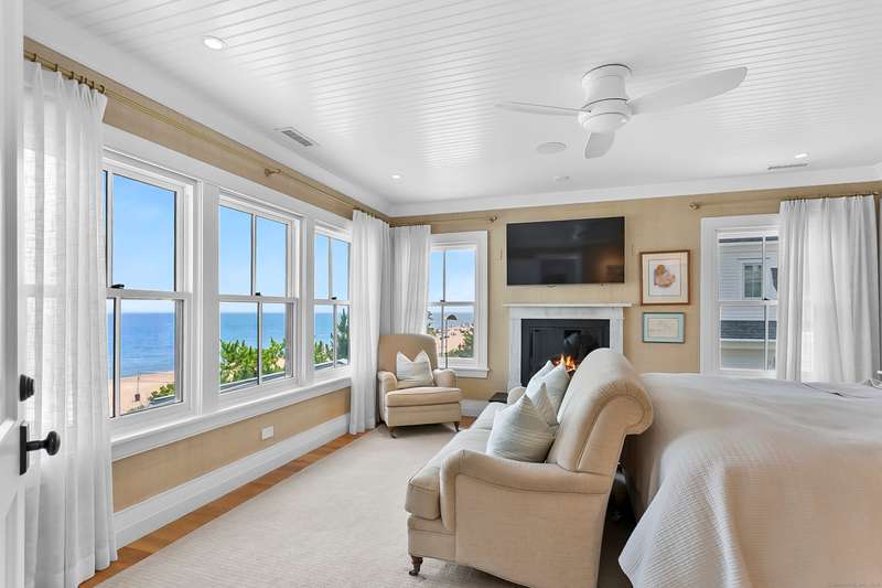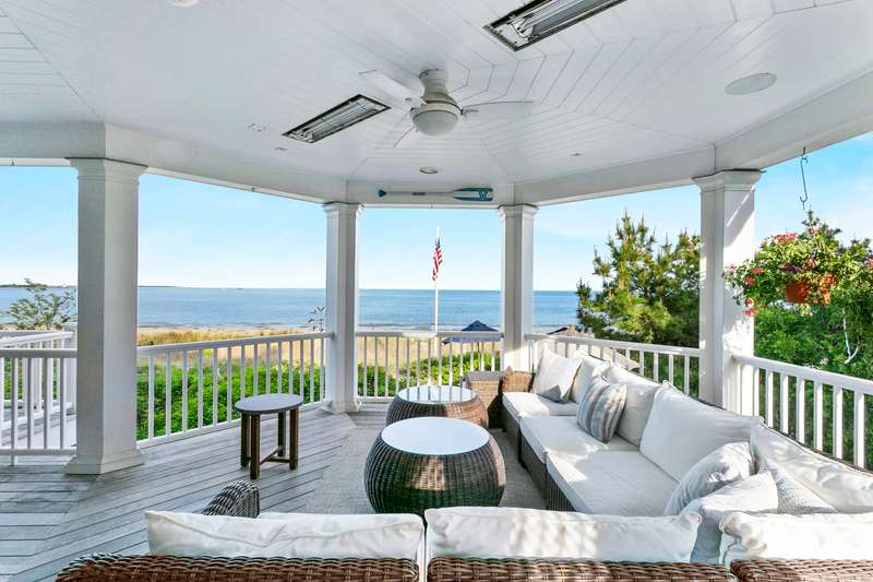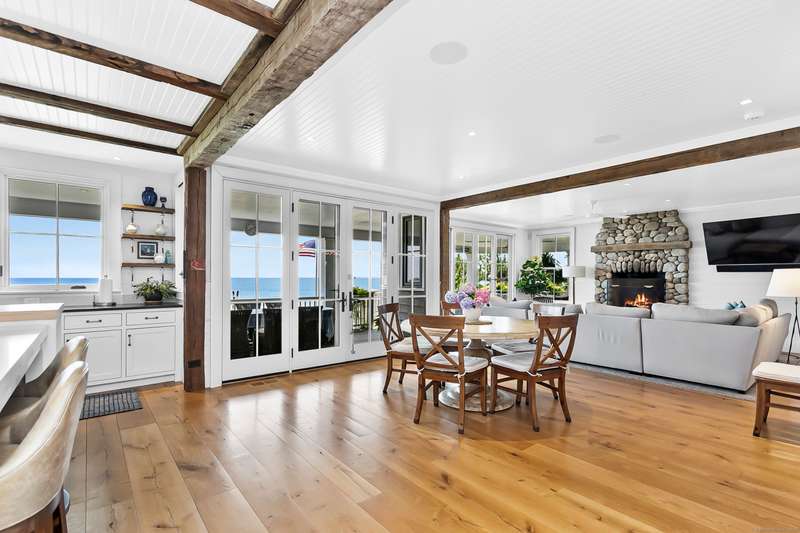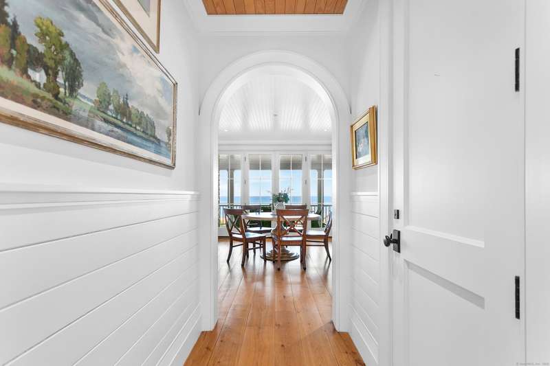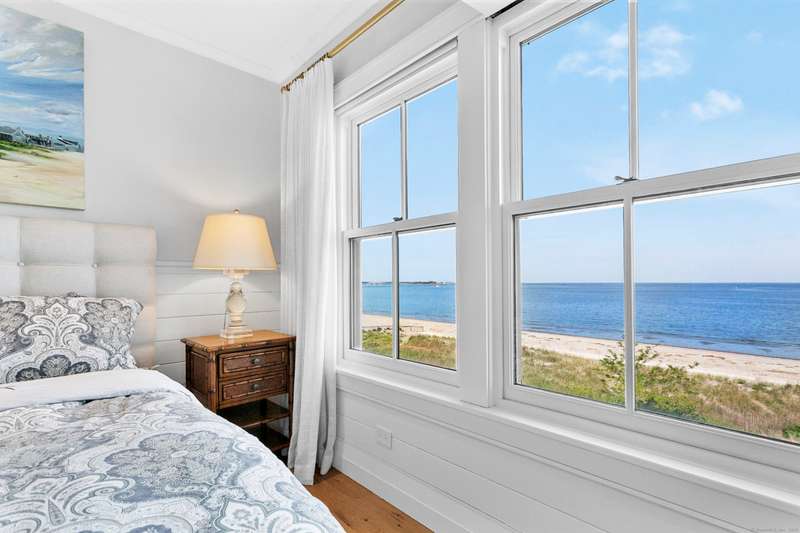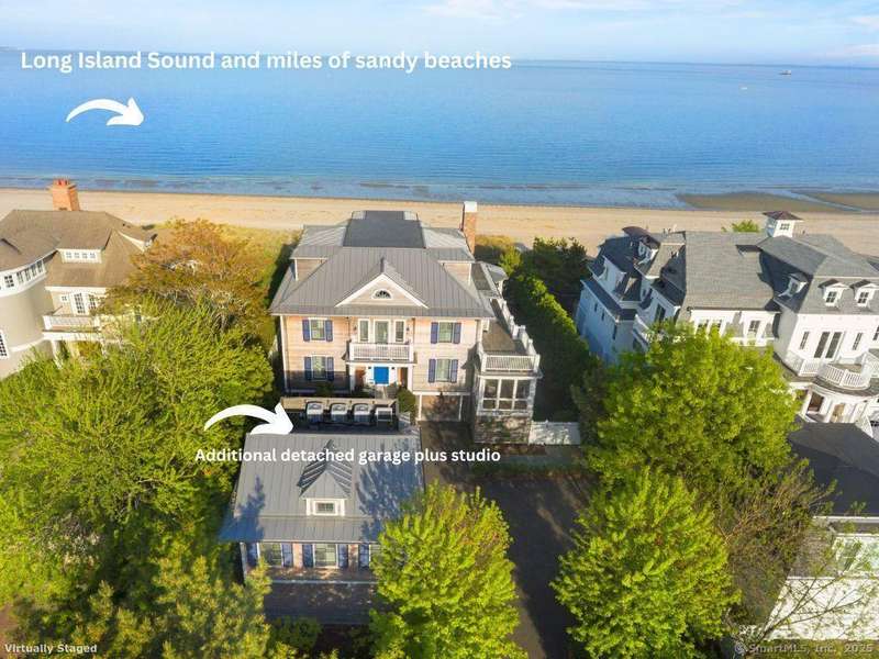 Introducing a breathtaking & architecturally striking waterfront estate on the Gold Coast - a treasure combining elevated design, top tier craftsmanship & smart luxury. Set on a rare .53 acre beachfront lot w/ 80+ ft of direct shoreline, this exceptional home offers 5,400sf of elegant living across 3 levels + a 560sf studio w/ a half bath - ideal for a guest suite or creative retreat. Wrapped in Alaskan yellow cedar siding, topped w/ a sleek standing seam metal roof & a wrap around porch the exterior exudes timeless sophistication & durability. Wide-plank hardwood flooring, exposed reclaimed natural beams & soaring ceilings truly set this home apart. State-of-art Crestron home automation, an elevator that services all levels, a whole-home generator, premium Lepage windows & Trustile 2" doors deliver peace of mind. Every inch of these stunning 12 rooms, both inside and out, presents something special whether it is a glorious water view, arched ceiling, custom mill work, built-ins, heate