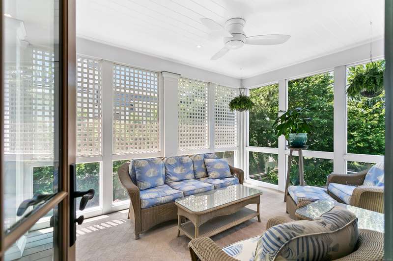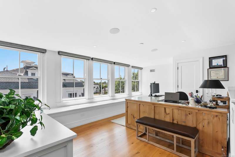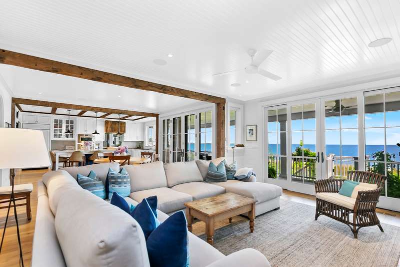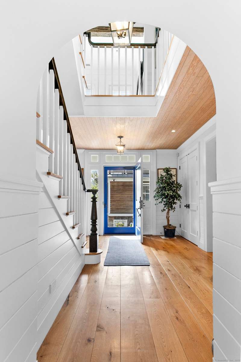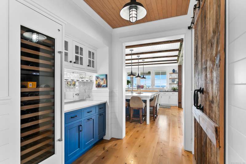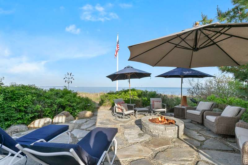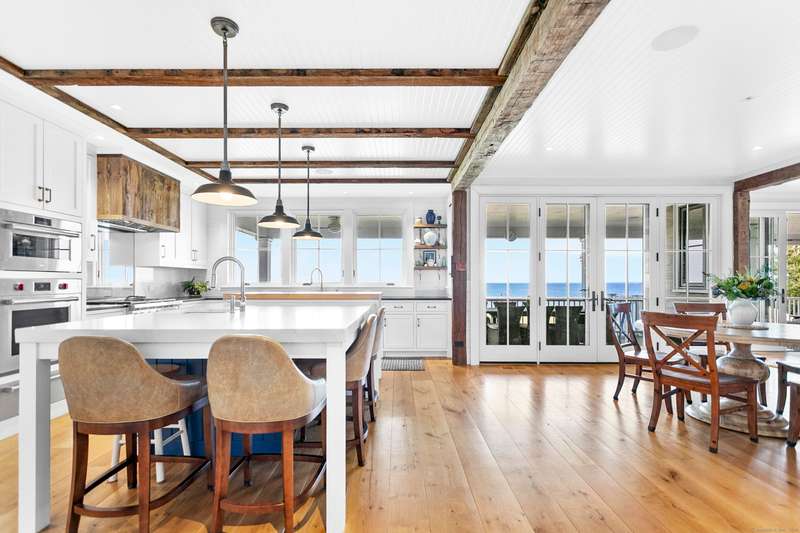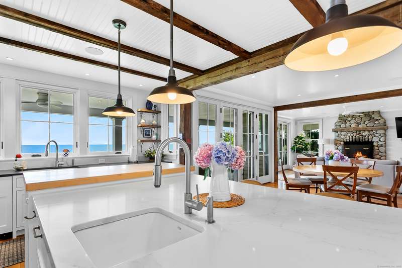 Introducing a breathtaking & architecturally striking waterfront estate on the Gold Coast - a treasure combining elevated design, top tier craftsmanship & smart luxury. Set on a rare .53 acre beachfront lot w/ 80+ ft of direct shoreline, this exceptional home offers 5,400sf of elegant living across 3 levels + a 560sf studio w/ a half bath - ideal for a guest suite or creative retreat. Wrapped in Alaskan yellow cedar siding, topped w/ a sleek standing seam metal roof & a wrap around porch the exterior exudes timeless sophistication & durability. Wide-plank hardwood flooring, exposed reclaimed natural beams & soaring ceilings truly set this home apart. State-of-art Crestron home automation, an elevator that services all levels, a whole-home generator, premium Lepage windows & Trustile 2" doors deliver peace of mind. Every inch of these stunning 12 rooms, both inside and out, presents something special whether it is a glorious water view, arched ceiling, custom mill work, built-ins, heate