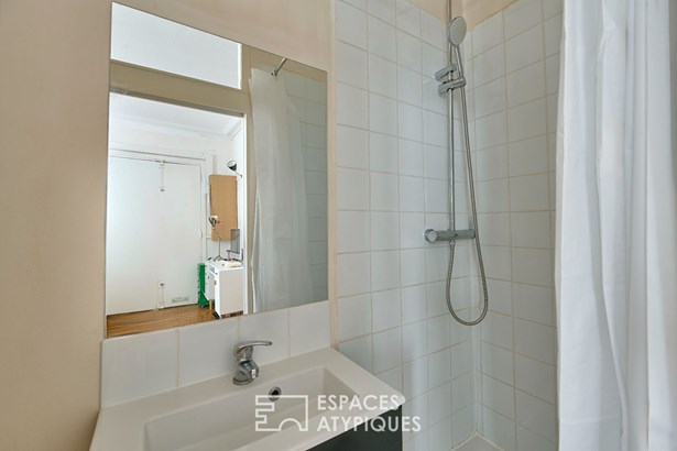 Close to the Lamarck metro station and the shops on Rue Caulaincourt, on a quiet street in a beautiful, well-maintained 1900s building, this bright 22.4 sqm Carrez studio on the ground floor has a 2.90 m ceiling height.