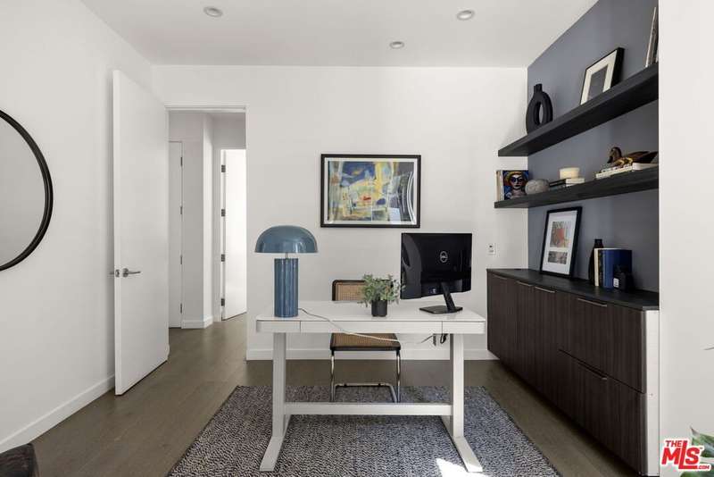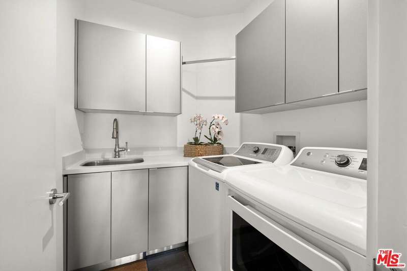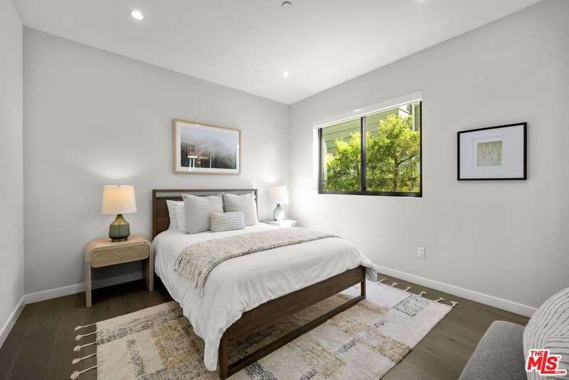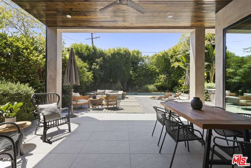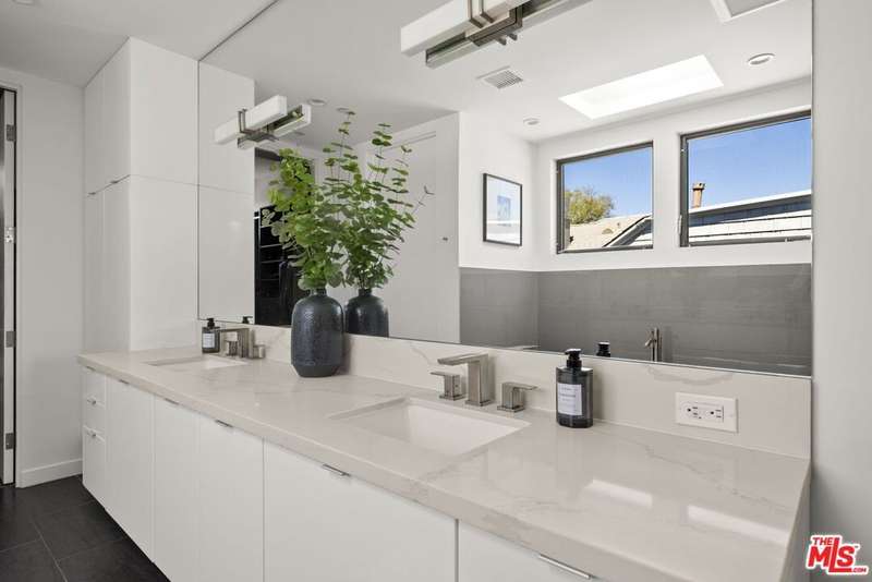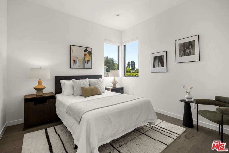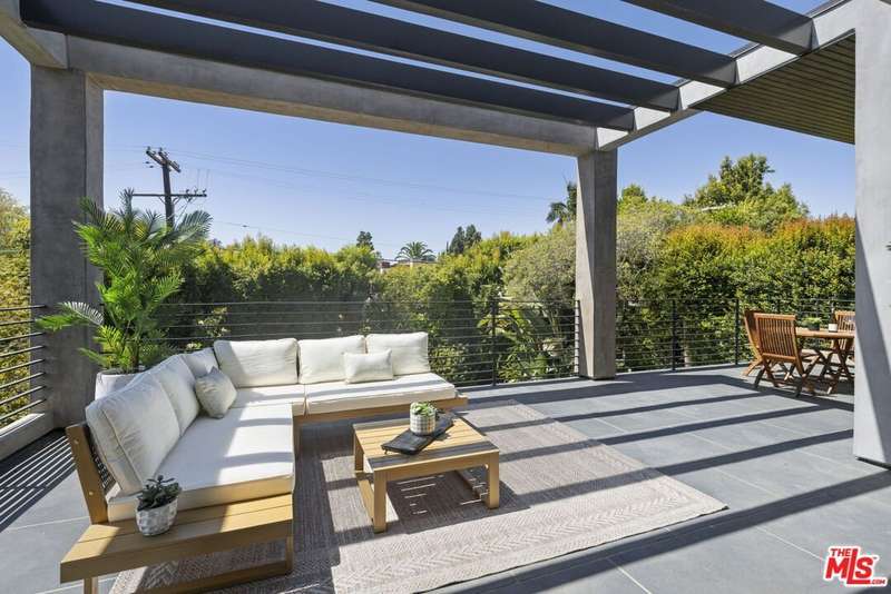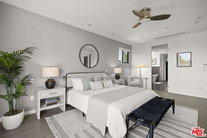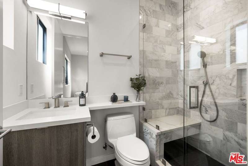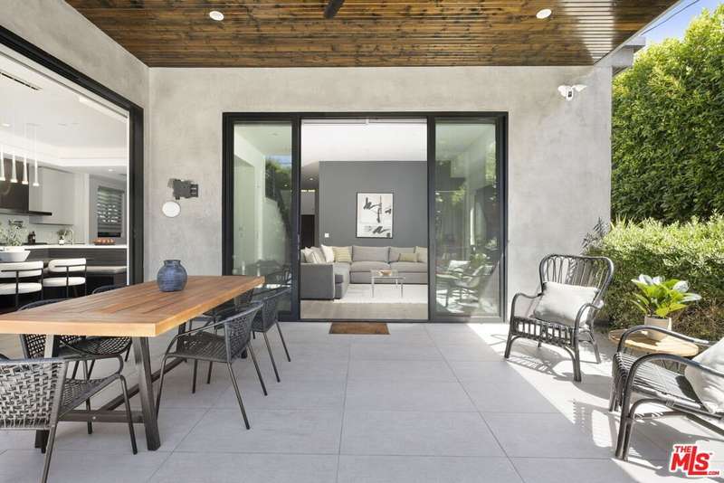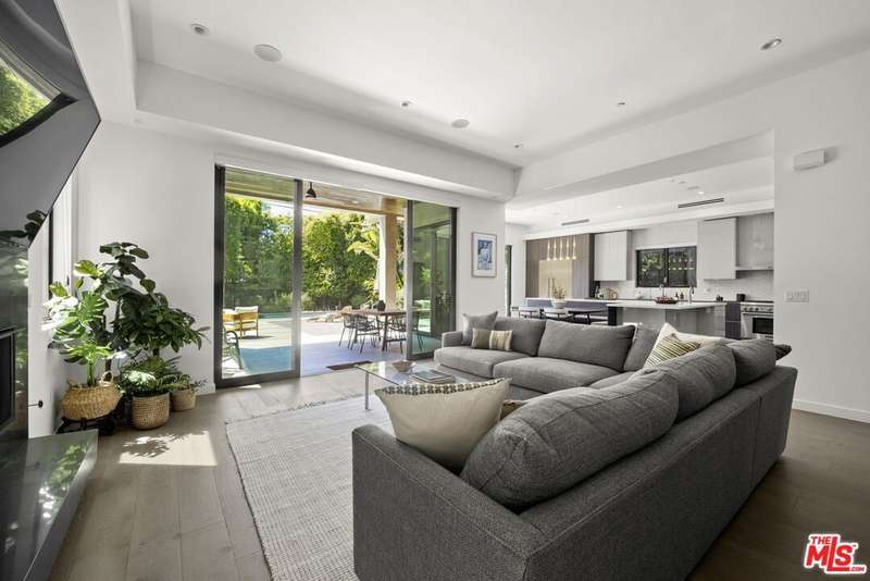 Striking, newer contemporary in one of Brentwood's prime locations. This quality home sits on an 8,000+ flat lot with a private and resort style back yard with a pool, free standing spa, outdoor shower and a built in BBQ station. The home features 4 bedroom suites, plus a separate office and wonderful library or additional family room. The lower level comprises the living room, dining room, dedicated office and great room/kitchen combo with walls of glass that open up to the outdoors. There is also one bedroom suite, a laundry room and 2 car garage with direct access. The upper level comprises an additional 3 bedroom suites and the library or family room with sliding walls of glass to a huge patio overlooking the lush back yard. Incredible kitchen with top of the line Thermador appliances, and a wonderful L-shaped island with a breakfast nook with built in bench seating and a walk-in pantry. The adjoining family room has a fireplace and sliding doors out to the covered patio. The primary bedroom has a fireplace, a large walk-in closet and luxurious bathroom with walk-in shower and free-standing tub. This amazing property boast high ceilings throughout, wood floors, an elevator, owned solar panels with Tesla power storage walls, 2 zone HVAC, built in speakers and an automated pool cover.