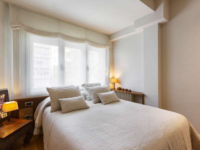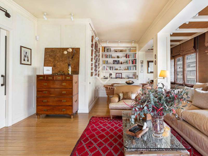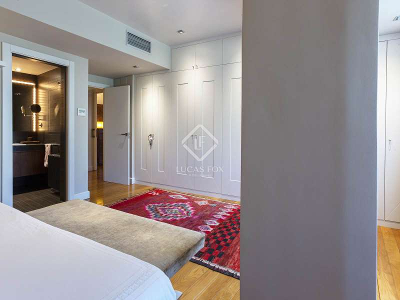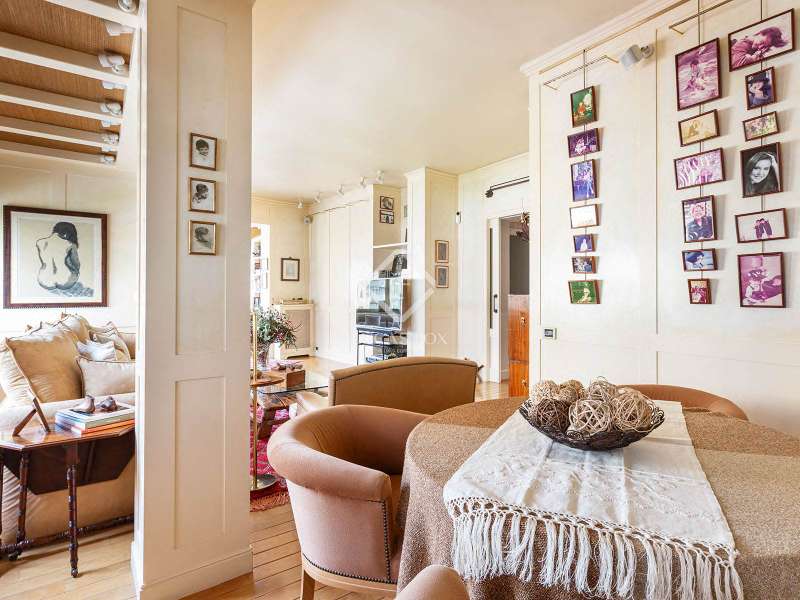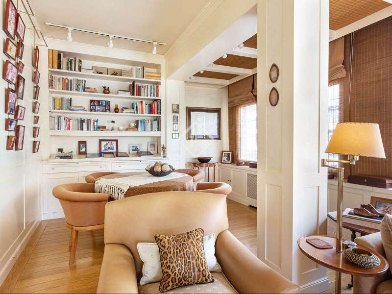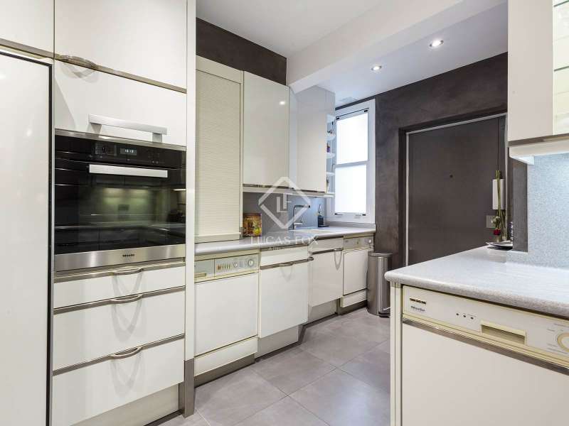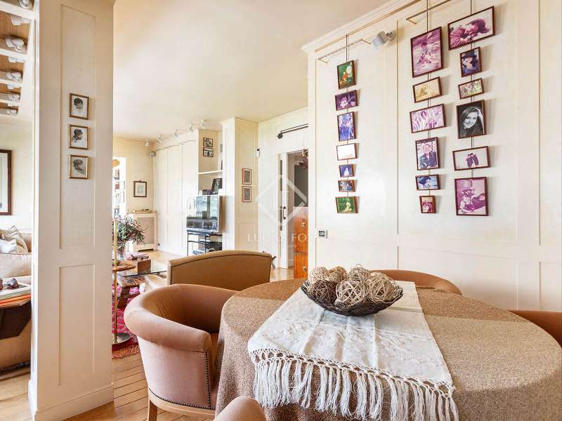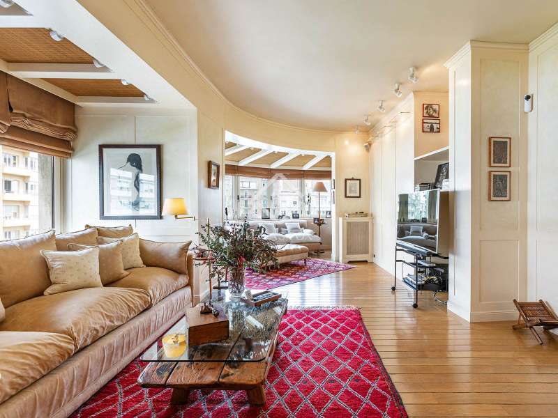The property was renovated by renowned interior designer Estrella Salietti. The interiors expert designed the property with two double bedrooms that share a bathroom and another master bedroom with an en suite bathroom . The natural oak floors provide warmth and sophistication, while the built-in wardrobes reinforce the property's elegant and timeless character. The modern, fully-equipped kitchen is a space designed for food lovers. It features high-end Miele appliances , Poggenpohl designer furniture, and a seamless Corian countertop that combines functionality and aesthetics in a spacious and bright space. The living room has unobstructed views of the street and faces west, making it the ideal place to relax, share moments with others, or enjoy the urban surroundings from the comfort of your home.