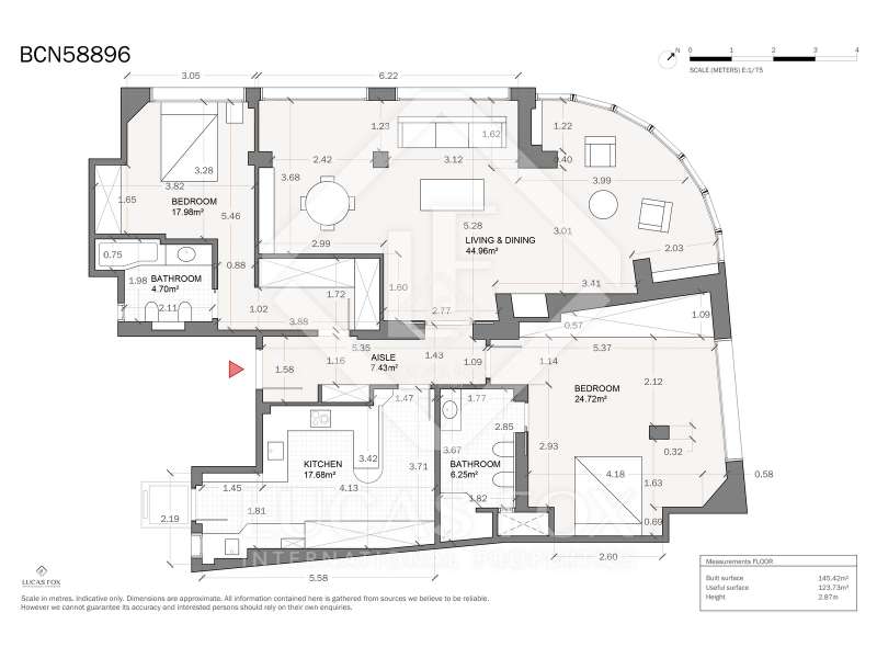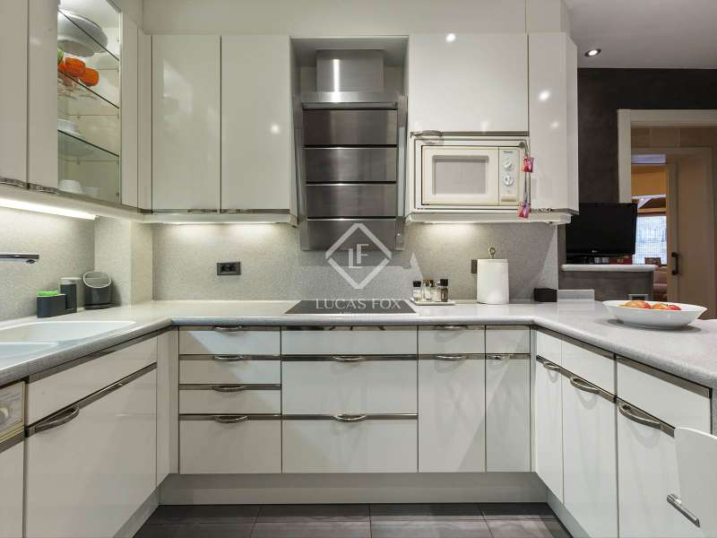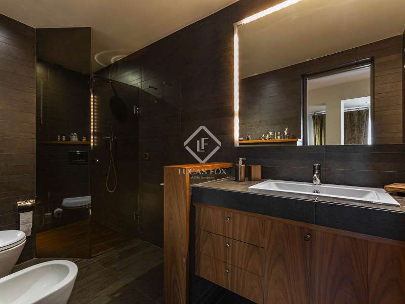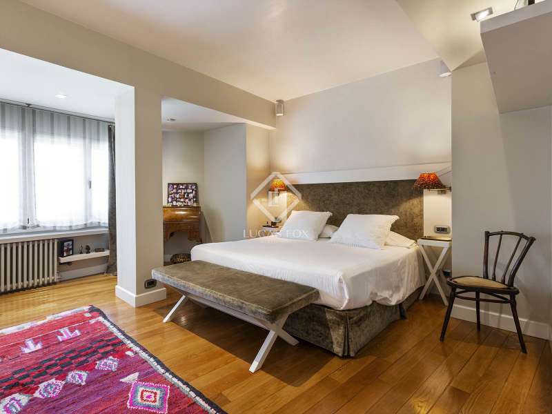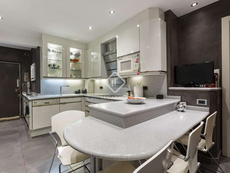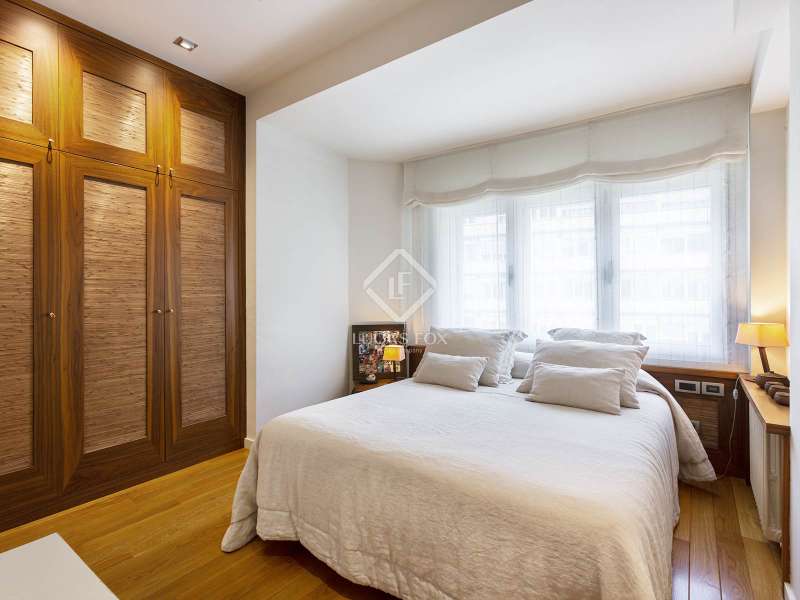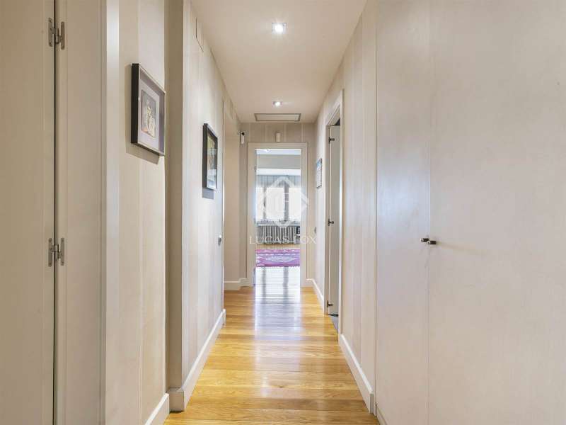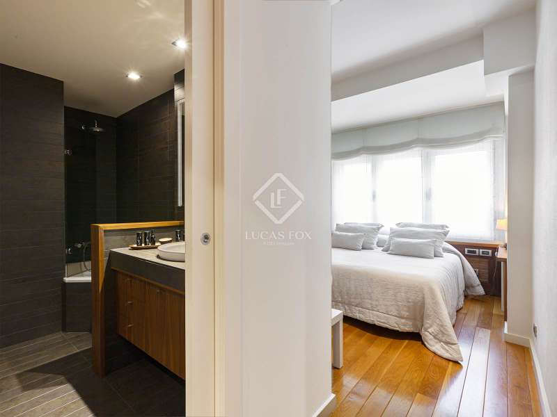 The property was renovated by renowned interior designer Estrella Salietti. The interiors expert designed the property with two double bedrooms that share a bathroom and another master bedroom with an en suite bathroom . The natural oak floors provide warmth and sophistication, while the built-in wardrobes reinforce the property's elegant and timeless character. The modern, fully-equipped kitchen is a space designed for food lovers. It features high-end Miele appliances , Poggenpohl designer furniture, and a seamless Corian countertop that combines functionality and aesthetics in a spacious and bright space. The living room has unobstructed views of the street and faces west, making it the ideal place to relax, share moments with others, or enjoy the urban surroundings from the comfort of your home.