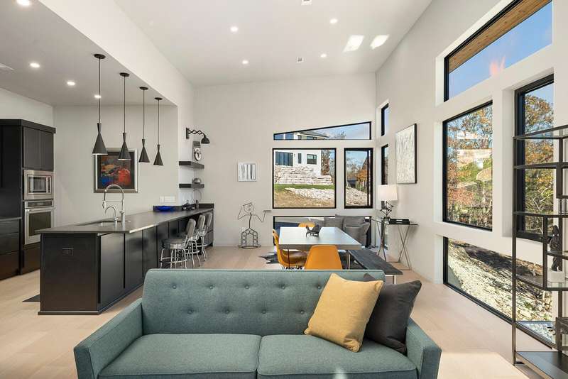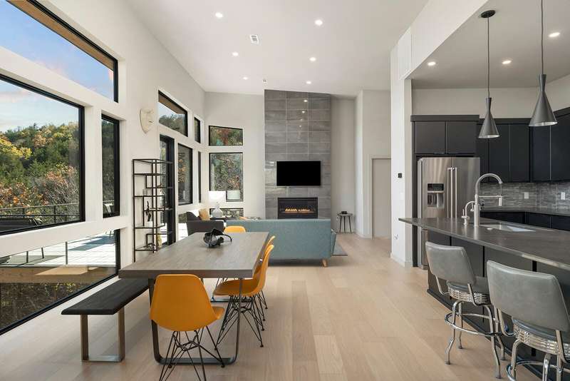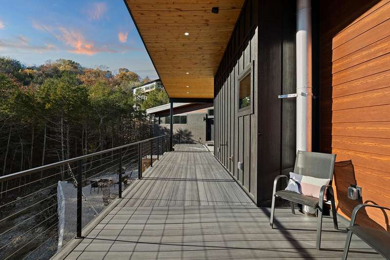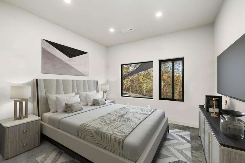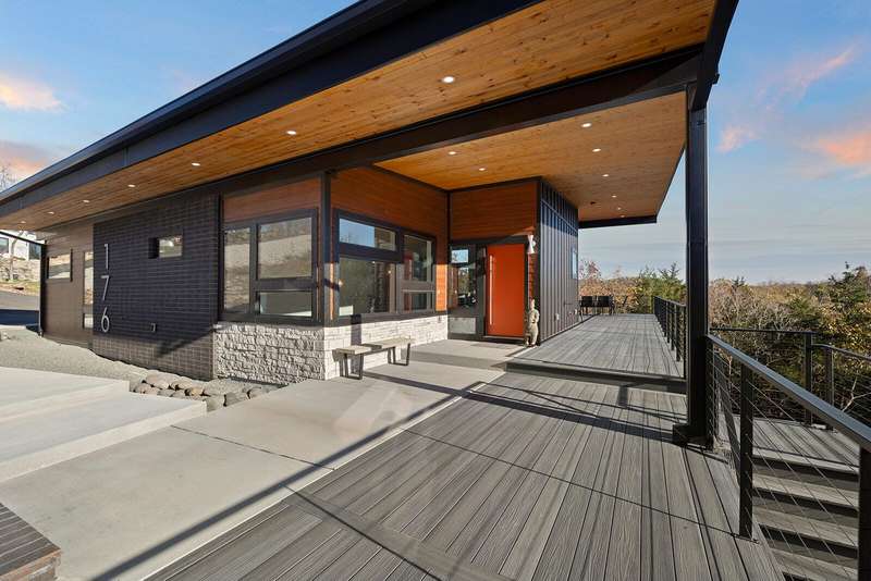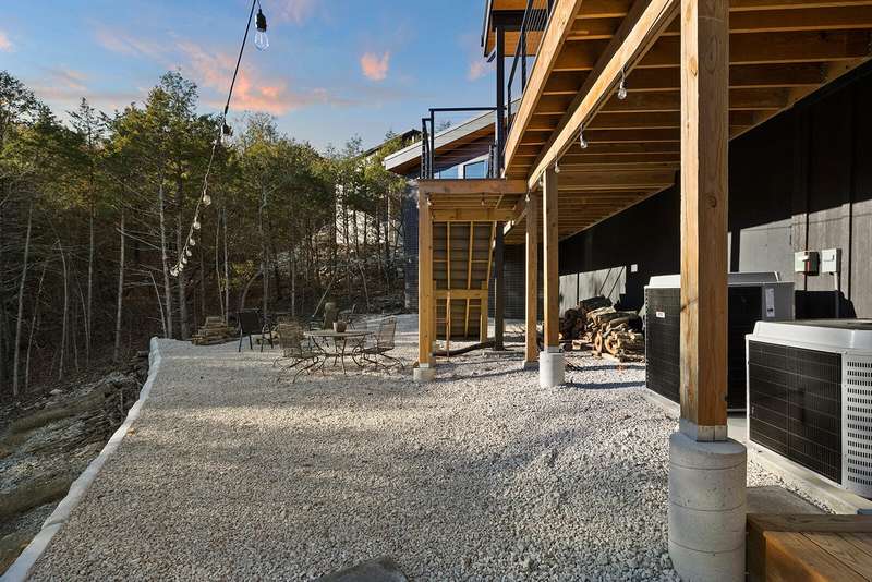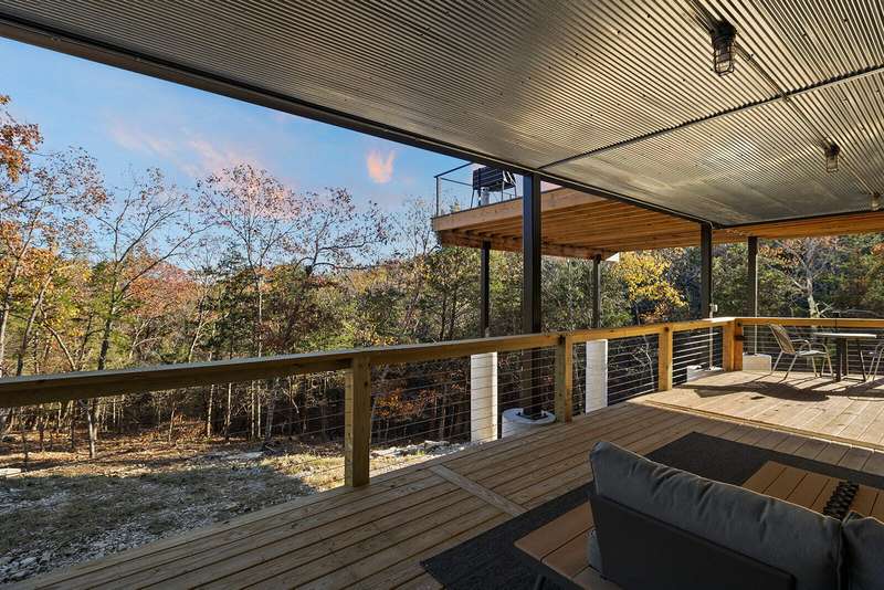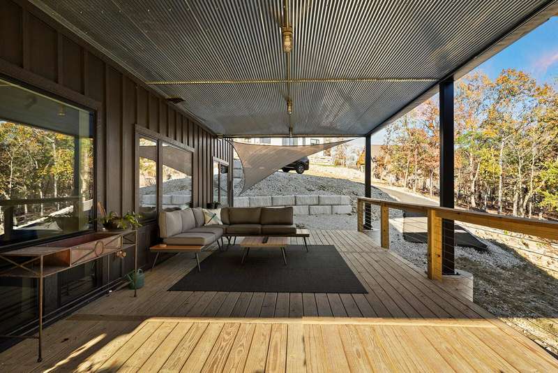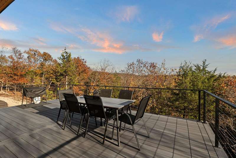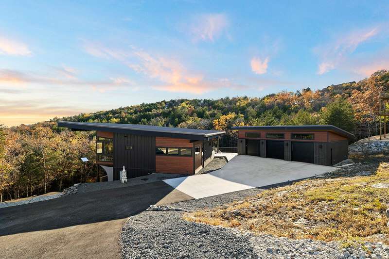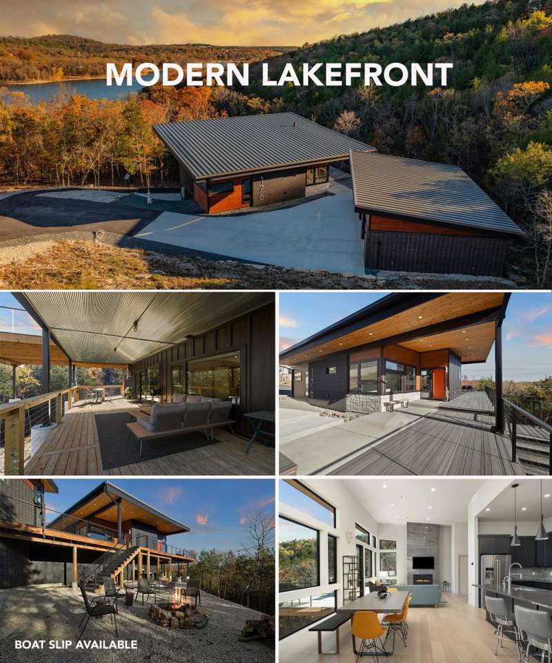Welcome to this exclusive Modern Lakefront home that features clean lines, open floor plan, and a minimalist aesthetic, with an emphasis on natural light. This custom home was completed in 2024, sits on nearly an acre and combines classy contemporary features, offering a perfect blend of style and comfort. Explore the wet weather creek as you walk to a secluded cove which is a short walk from your private fire pit area bordered by 1.5 acre greenspace. Step inside to discover an open floor plan that seamlessly integrates living, dining, and kitchen areas with plenty of outdoor living space. The property boasts a serene setting with stunning views of Table Rock Lake and the surrounding forest, providing a tranquil backdrop for daily living and weekend getaways. Enjoy the outdoor lifestyle regardless of weather as the outdoor spaces include a colossal deck upstairs, and a large, covered deck downstairs, ideal for entertaining or relaxing. The 2nd kitchen downstairs makes entertaining a breeze. The versatile layout of this 3000+ square foot home includes 3 bedrooms, 2 1/2 baths, with a main level master bedroom, a sitting room and laundry room close to the master bedroom. Want more? Oversized 3 car detached garage, Storm Shelter, large mechanical room/workshop room in basement and huge driveway with plenty of room for toys and large vehicles. Parking for everyone. Conveniently located in the sought-after Lake Forest Hills neighborhood near Branson West with easy access to main routes to Springfield and Branson, Situated in a safe, friendly neighborhood, you'll enjoy peace of mind and the opportunity to explore Table Rock Lake and the Ozarks with Ease. (10X28 Boat Slip available for purchase separately as personal property for $65k)Offered fully furnished. Feature Sheet attached as a document