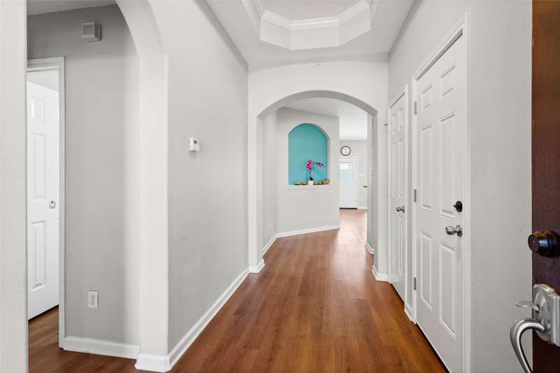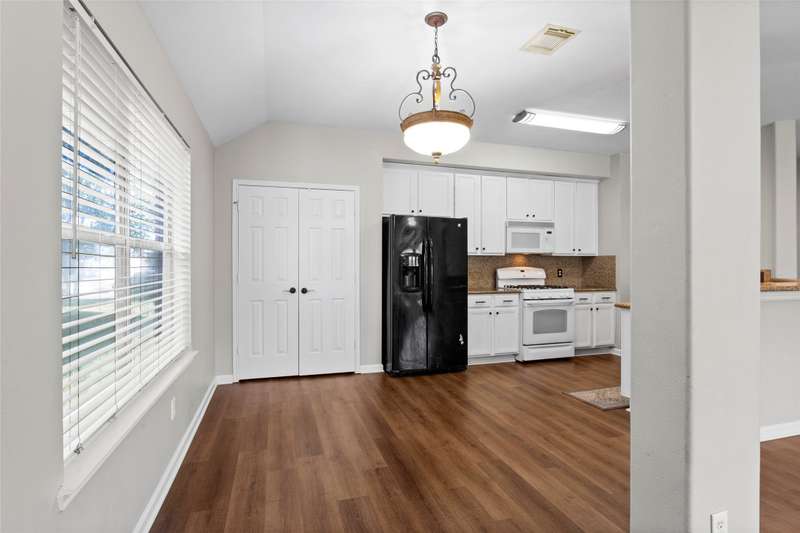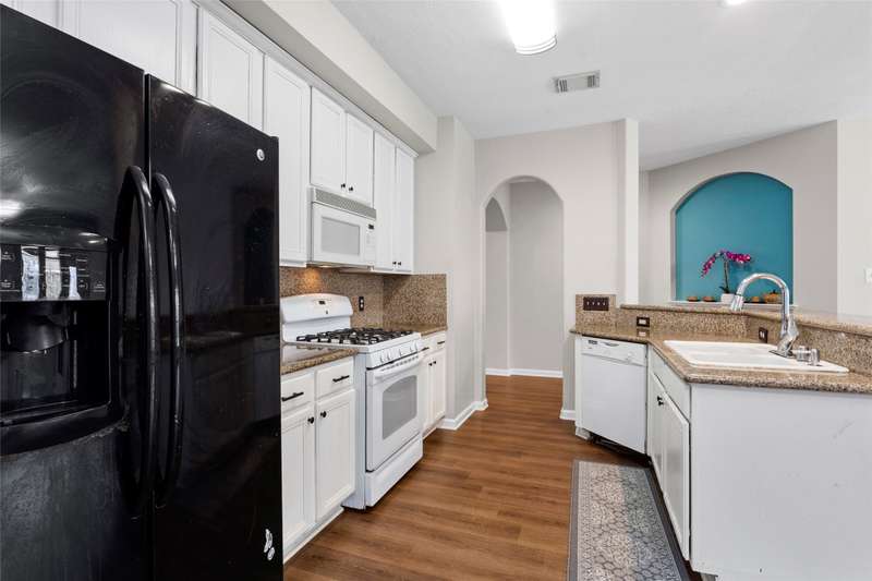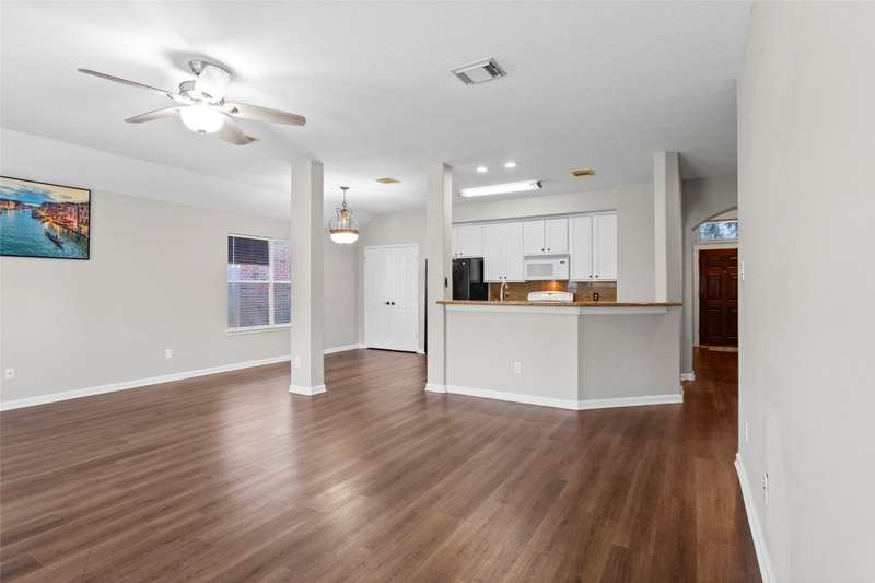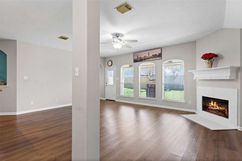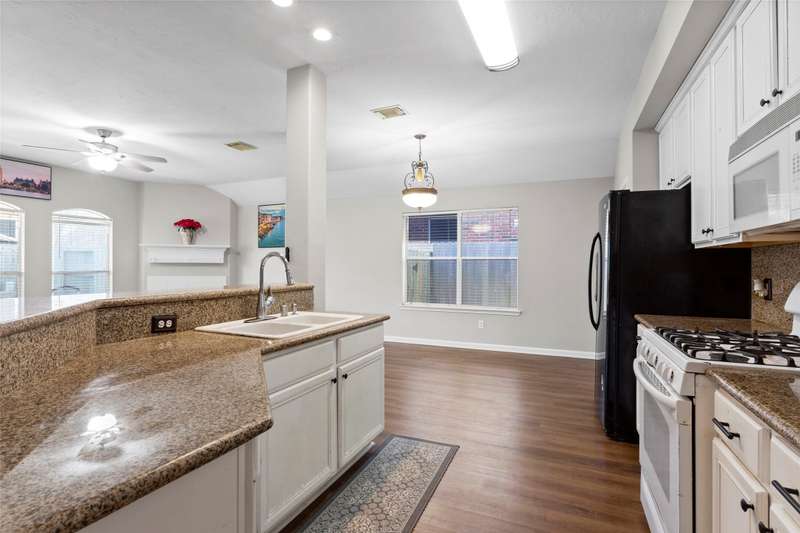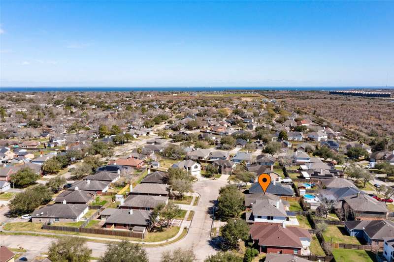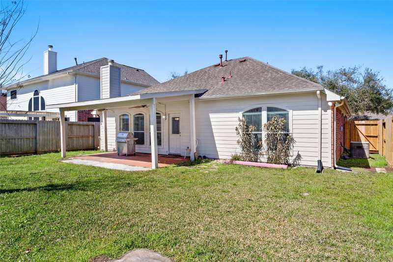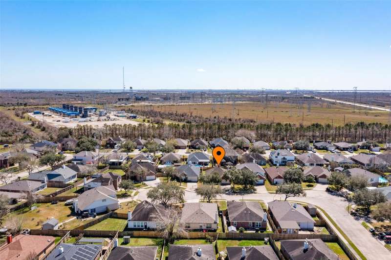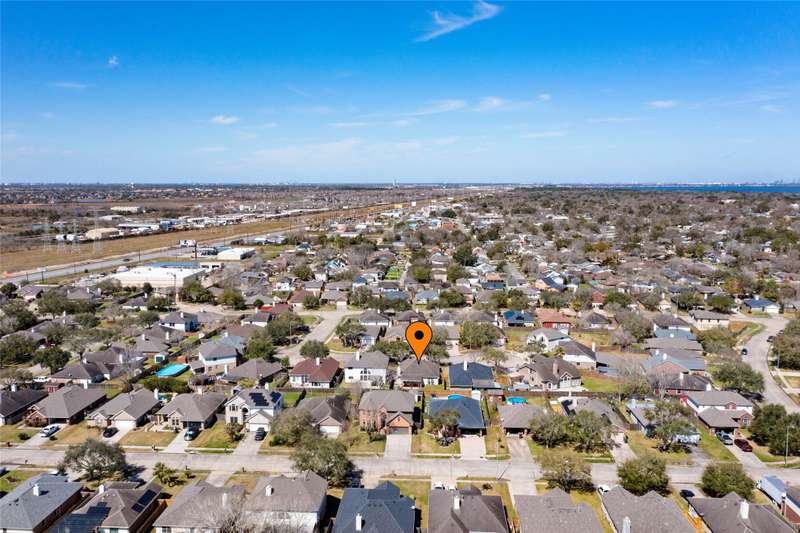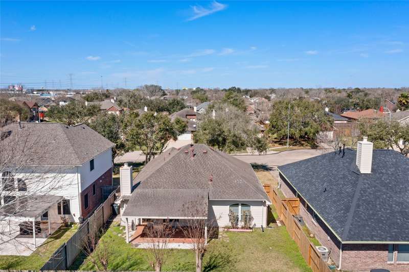 Welcome to this charming 3 Bed, 2 Bath split floor plan home with a 2-Car Garage! Featuring high vaulted ceilings in the Living and Breakfast areas, this home boasts elegant arches, rounded corners, luxury vinyl flooring, and a cozy gas fireplace. The Kitchen includes granite countertops, ample cabinet space, a pantry, matching stove & dishwasher, plus a refrigerator. A breakfast bar overlooks the open-concept Living and Breakfast areas, perfect for entertaining. The spacious Primary Bedroom includes a large walk-in closet and en-suite bath. Enjoy the outdoors under a huge covered patio in the backyard. NEW ROOF installed August 2025! Conveniently located near major work areas, shopping, dining, and just a short drive to Galveston Bay and Kemah Boardwalk. Don’t miss your chance to own this beautiful home—schedule your showing today!