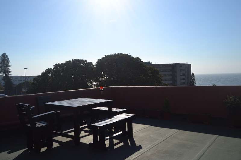 Scottburgh Centre is a well managed block of flats that is a stroll to the beach and the shops. You will rarely find a two bedroom, two bathroom flat over a 100sqm in Scotburgh. The flat offers you a carpeted lounge cum dining rooms, kitchen, two bedrooms with built-in cupboards and ceiling fans, main en-suite and a second bathroom. There is an air con in the main bedroom. There is a single lock-up garage. In the building there is a lift and communal braai areas. Prepaid electricity and water is included in the levy. The size of this flat is its crowning glory!