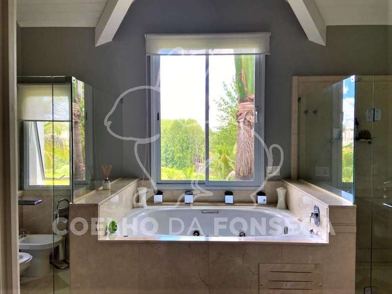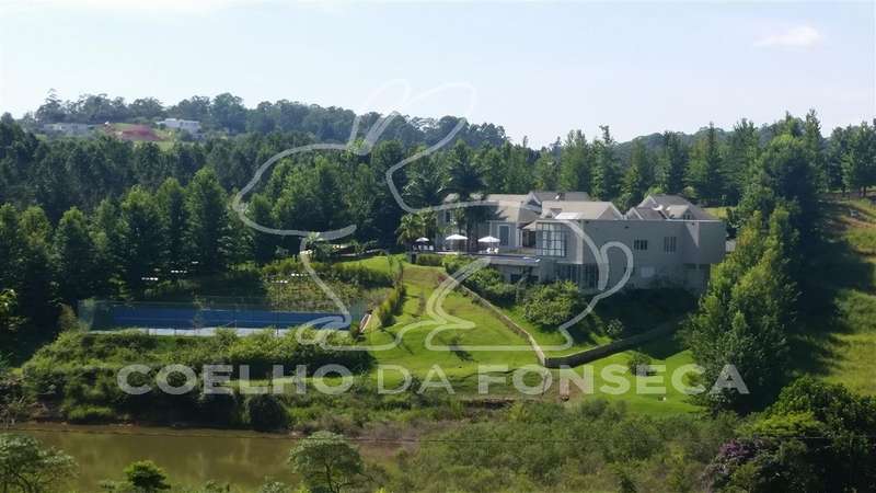 Mansão cinematográfica, estilo clássico, em condomínio discreto e com total segurança a 40 minutos de São Paulo. Casa principal com 5 suítes, salas de jantar, estar e TV, duas salas intimas e apartamento conjugado com duas suítes. Casa anexa: duas suítes, salão de jogos, cozinha americana, duas salas e dois banheiros. Lazer privativo com piscina de borda infinita e jacuzzi, sauna, lago, quadra de tênis e projeto para heliponto. Sede do condomínio com lazer completo, salao de festas e fitness.