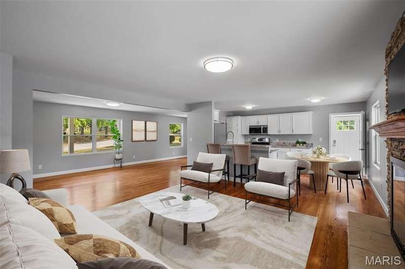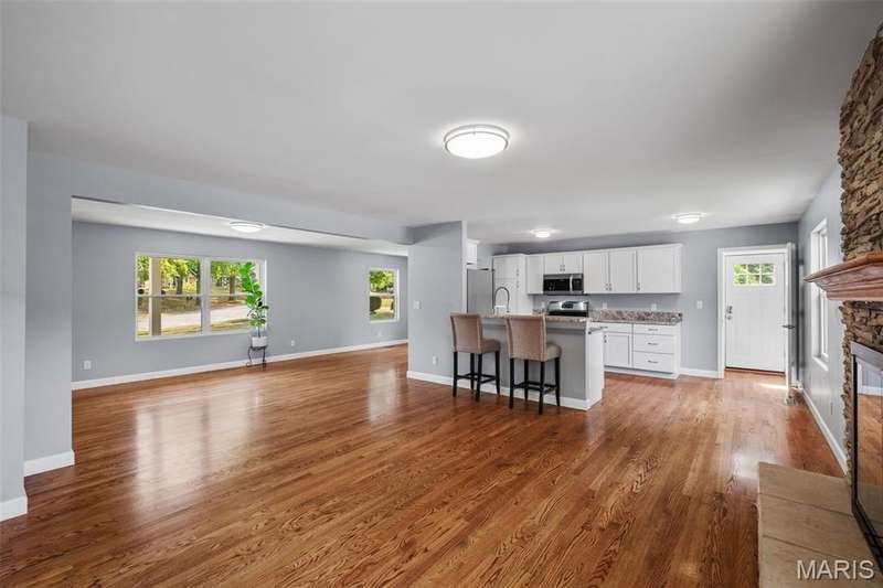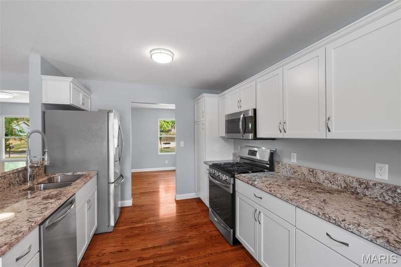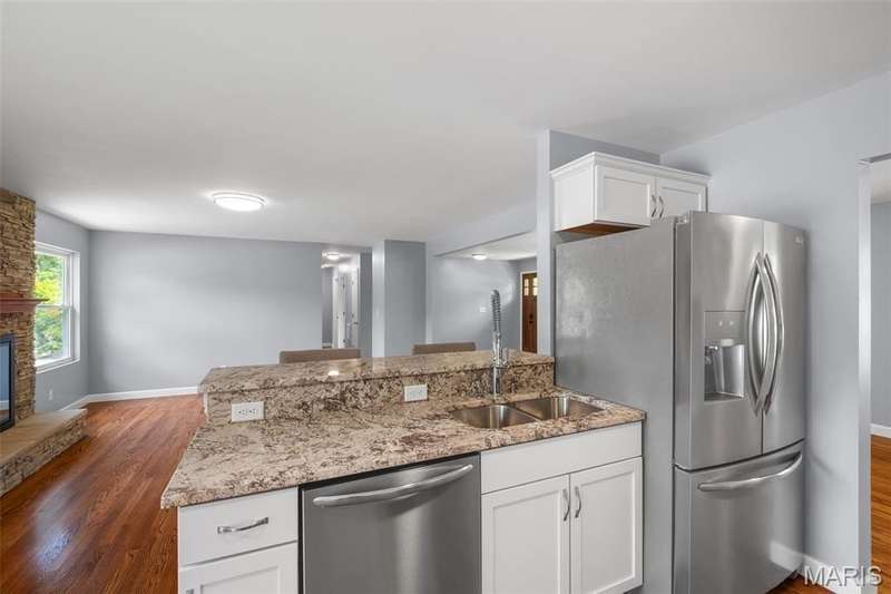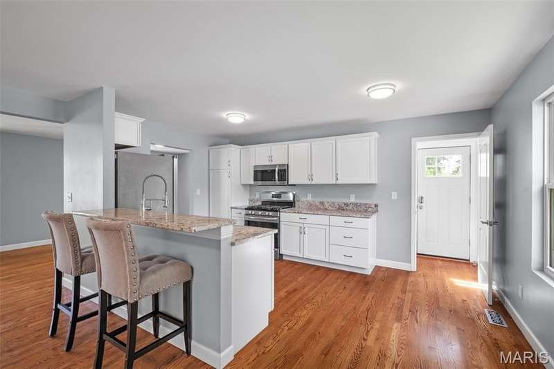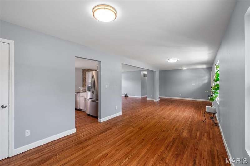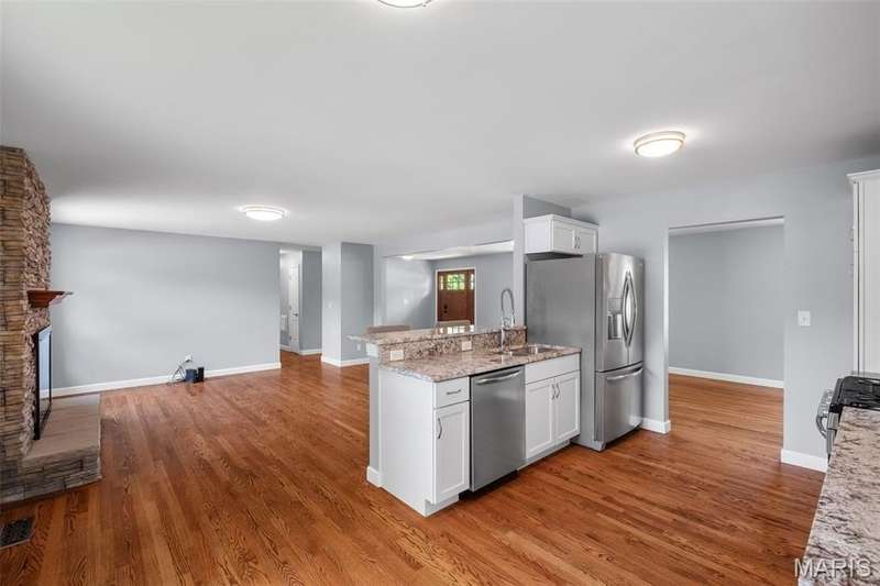 Stunning 3 bedroom, 3 bathroom ranch in the sought-after Parkway School District! Completely remodeled, this home shines with updates. The main floor was fully renovated in 2020, and the lower level has recently been beautifully finished. The kitchen is a showstopper with 42” cabinets, crown molding, granite counters, tile backsplash, breakfast bar, and stainless appliances. Bathrooms are fully updated, hardwood floors refinished, 6-panel doors, neutral paint tones, 6” base trim, and modern lighting throughout. Mostly full-brick exterior with a covered porch adds curb appeal. The oversized 2-car garage, level yard, and fully vinyl-fenced backyard make outdoor living easy. Close to parks, highways, and shopping—this move-in ready gem is waiting for you!