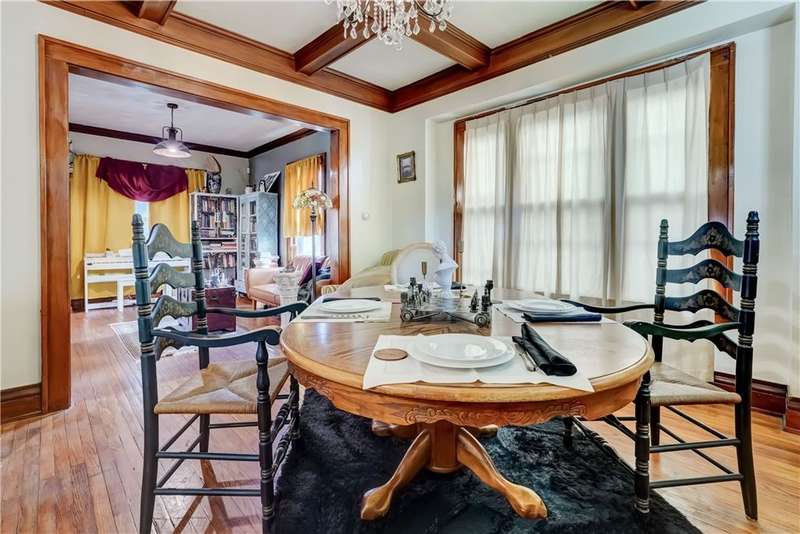 This delightful colonial located on a quiet dead-end street near the Genesee Riverway and Seneca Park Zoo is dripping with old-world charm including hardwood floors, gleaming wood trim, leaded glass, pocket doors, and coffered wood beam ceilings. The moment you step into the grand foyer you will notice the ornamental touches! Large living room adjoins fancy formal dining room with pass through to updated kitchen with maple cabinets, butler's pantry and all appliances included (check out the cool retro fridge!)? Upstairs find 2 sprawling bedrooms, the primary with quaint 2-nd level back-porch, a full bath that was updated in the last 5 years and walk-up attic access that is currently being used as a walk-in closet! Full basement has potential for storage and more if you might want to finish it off, plus it has a convenient ? bath. Relaxing enclosed front porch offers more space for whatever you may need! Outside find a private backyard sitting area and maintenance free vinyl siding. This one is a must see! Showings begin Wednesday, 9/17 with delayed negotiations until Tuesday, 9/23 at noon.