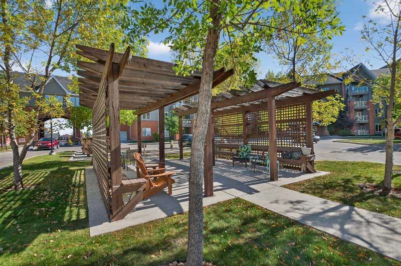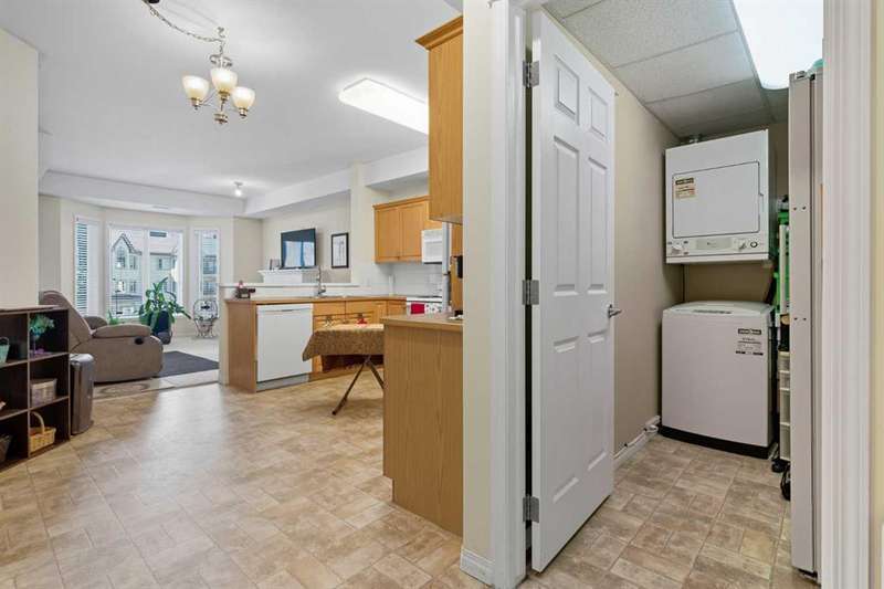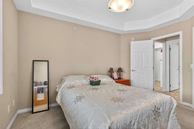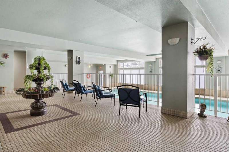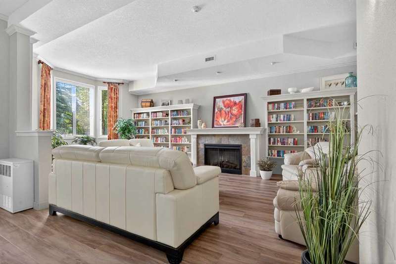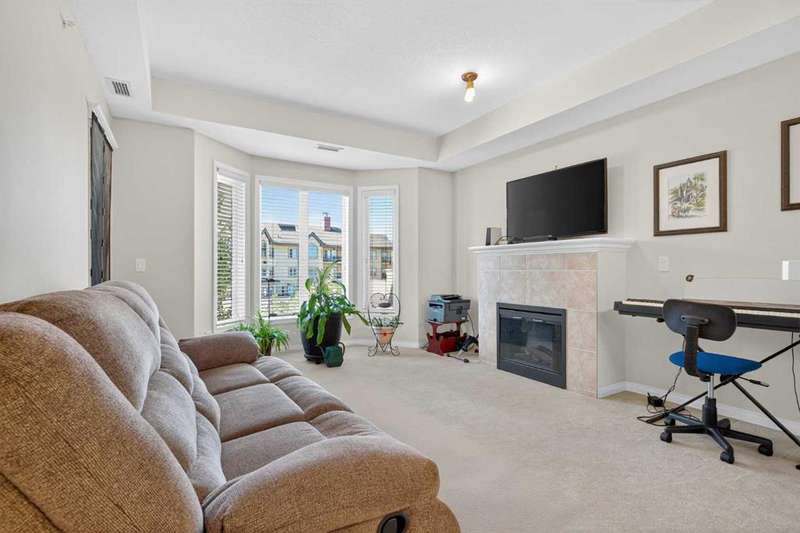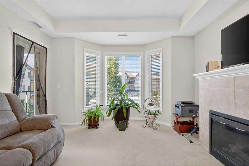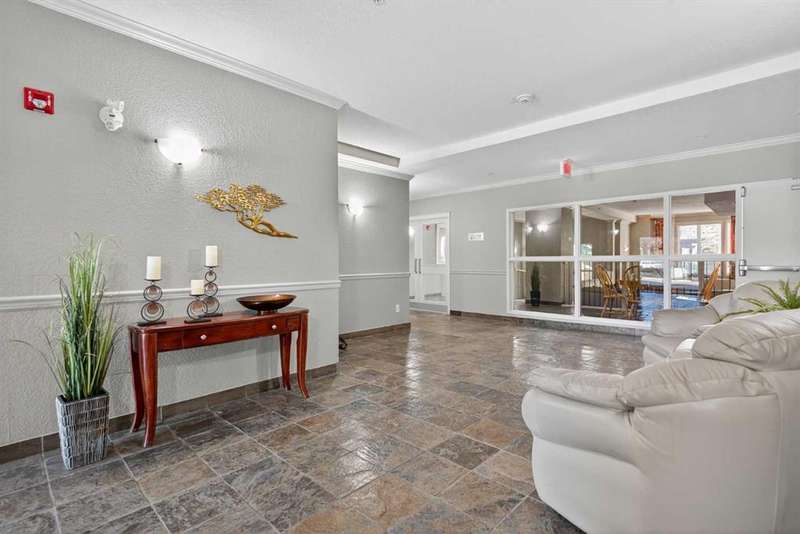Welcome to 446 – 15 Everstone Drive SW — a rare opportunity to own a private, quiet, top-floor suite in the highly sought-after Sierras of Evergreen, one of Calgary’s premier 55+ communities. This impeccably maintained south-facing unit offers peaceful views over green pathways and comes with brand new central A/C, Energy Star laundry, a cozy fireplace, and an inviting 130 sq. ft. balcony perfect for year-round sunrises and sunsets. Step inside to a bright 706 sq. ft. open layout featuring: • a spacious foyer and front closet • a wrapped kitchen with corner pantry, eating bar, and room for a small island • a flexible dining/living area with a fireplace • a large primary bedroom with 7'×5' walk-in closet • a generous in-suite 9'×5' laundry/storage room • titled underground parking, and a huge storage locker with switched interior light and electric outlet Living in the Sierras means exceptional value: all utilities included, beautifully manicured grounds, and a remarkable list of amenities. Every building is connected indoors through the heated parkade, five elevators for total convenience. Enjoy an unmatched lineup of 55+ lifestyle amenities: • indoor pool & fitness centre • billiards, shuffleboard, woodworking, crafts & winemaking rooms • libraries, lounges & social spaces • guest suites • theatre room • heated parkade ramp & car wash • outdoor pergola/gazebo seating areas Recent updates include new vinyl plank flooring in common areas (2023–24), updated theatre equipment, refreshed guest suites, newer fitness machines, refurbished pool tables, and substantial ongoing maintenance — all supported by a strong reserve fund and exceptional management. This outstanding home is available for viewing through your Realtor via ShowingTime. Virtual tour, floor plans, and documents are available in the supplements