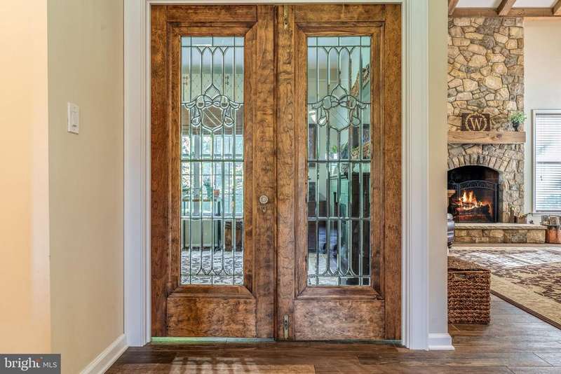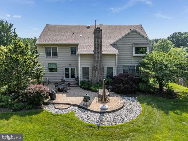Meticulously maintained and thoughtfully updated, this expansive Colonial offers an open floor plan and a tranquil cul-de-sac setting. Surrounded by lush landscaping and backing to woods for added privacy, the home invites relaxation on the rocking chair front porch at sunset or entertaining on the spacious paver patio overlooking the park-like backyard. At the heart of this home is the large, recently renovated gourmet kitchen, featuring a generous center island and high-end appliances. The kitchen opens to a dramatic two-story Family Room showcasing a custom floor-to-ceiling stone wood-burning fireplace with a gas log starter, reclaimed hand-hewn beams, and a beautifully crafted custom mantle the perfect blend of rustic warmth and modern luxury. The first floor offers both front and back staircases for easy access throughout the home. A spacious office provides a bright and inspiring workspace, highlighted by custom doors sourced from France. Formal living and dining rooms create an elegant setting for entertaining, while a convenient powder room and laundry room add everyday functionality. Ceramic tile flooring extends throughout the first level, enhancing the homes clean, cohesive design. The second-floor primary suite is a true retreat, featuring three walk-in closets with custom organization systems and a spa-like bath with a soaking tub and double vanities. A beautifully renovated hall bath serves the three additional bedrooms, each offering generous space and natural light. A large gym completes the second floor, providing a perfect area for fitness and wellness at home. The finished basement extends the homes living space, featuring stained epoxy flooring and a spacious recreation room ideal for gatherings or media. Two additional flex rooms offer versatility for a home office, hobby space, or guest area. A powder room, walk-in closet, multiple additional storage closets, and a large unfinished area provide ample room for comfort and organization. A three-car garage completes the home, featuring built-in storage systems and an epoxy-coated floor for a clean, organized, and functional space. Enjoy complete peace of mind with recent upgrades, including a new roof (2024), updated HVAC system, two commercial-grade sump pumps in the basement, a new hot water heater, and a septic pump installed in 2025. The septic system has been inspected and approved by the Health Department, ensuring everything is in top working order for the next homeowner.