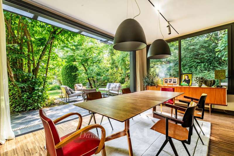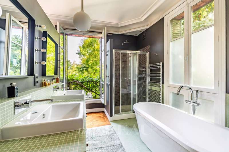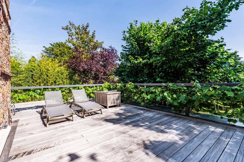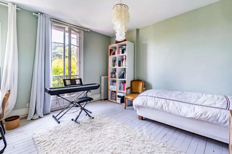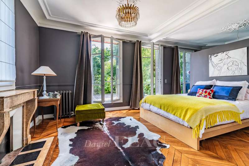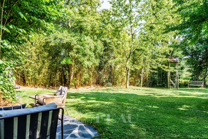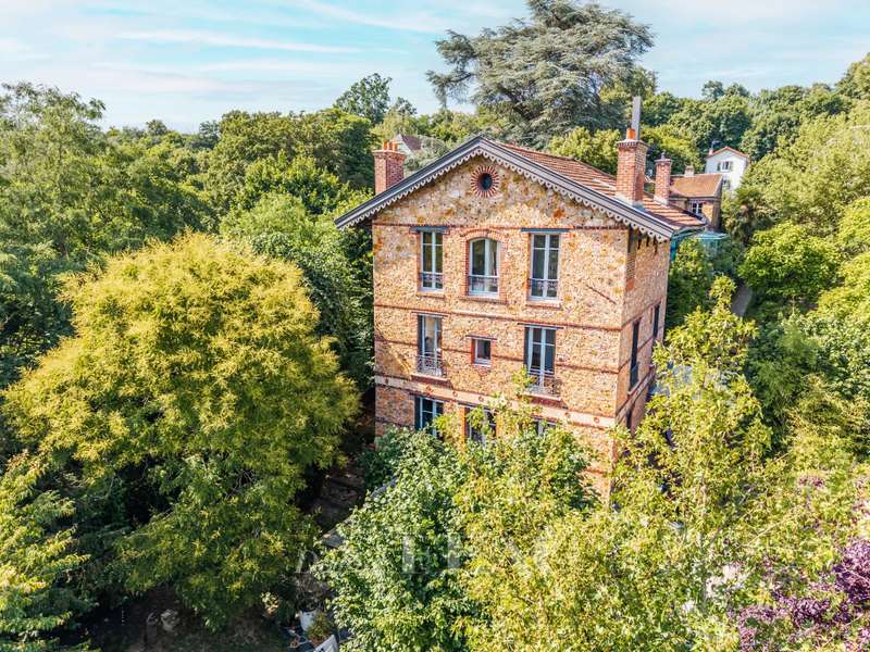 This mid 19th century property set in a south-facing 948 sqm plot is located near Saint-Cloud Park, and a stone’s throw from the station and the schools. Extended in 2006, it offers 328 sqm of floor space and about 260 sqm of living space as defined by the Carrez Law including a spacious living/reception room with a fireplace, a dining area, a spacious kitchen, and a study or TV lounge. The 1st floor comprises a master suite with a bath/shower room and dressing room, and five bedrooms and two bathrooms (one with a utility area) are on the upper floors. The property commands open views over leafy greenery.