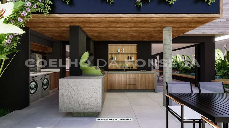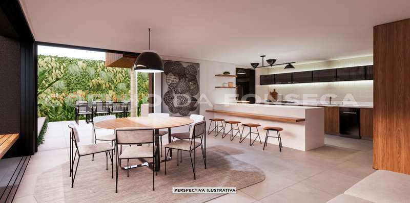 Sala de estar integrada à cozinha e varanda gourmet, Home office, Solário, Piscina \r\r\r